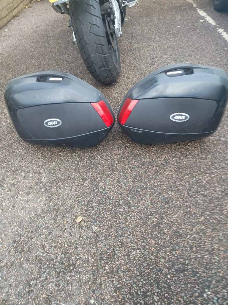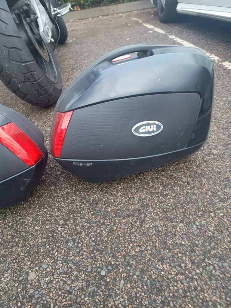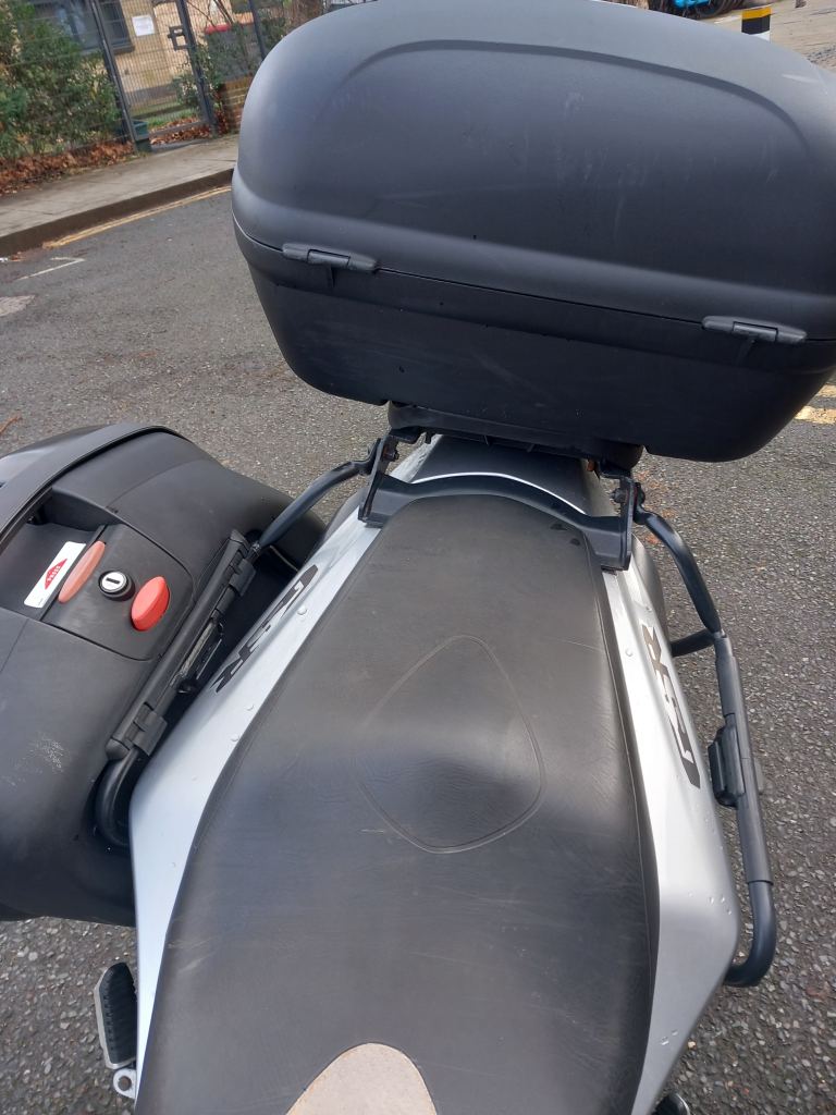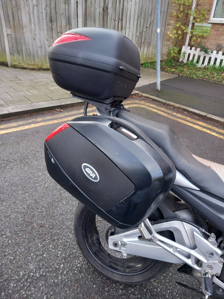 GIVI rack, removable panniers (see pics) and large fixed top box.