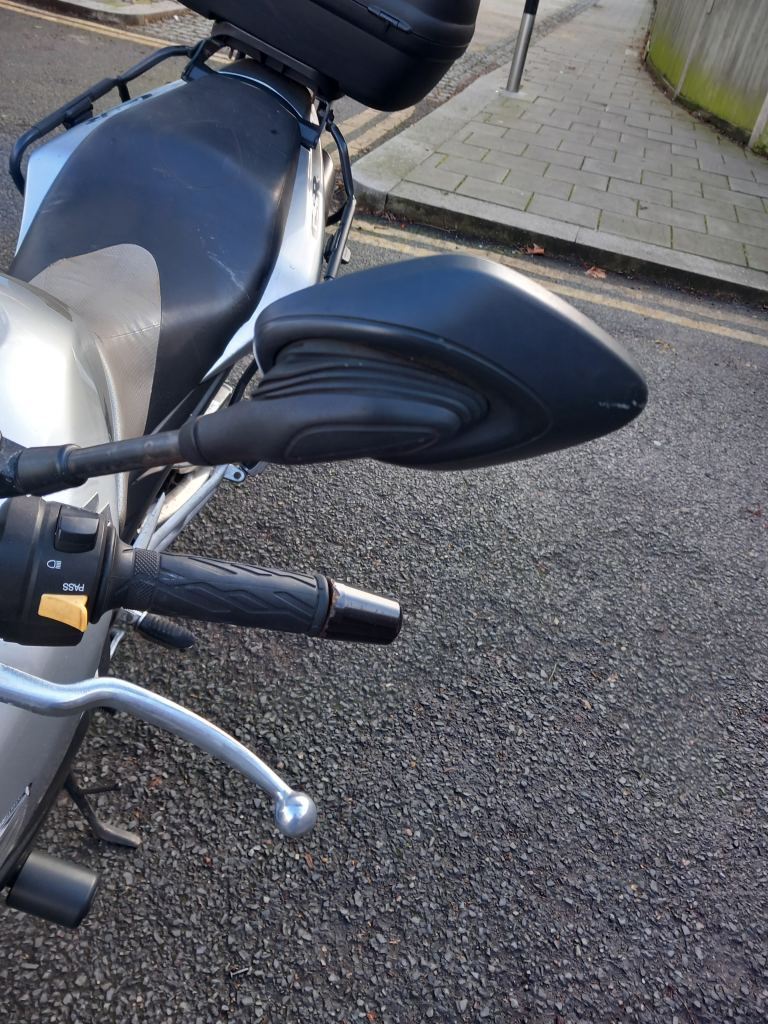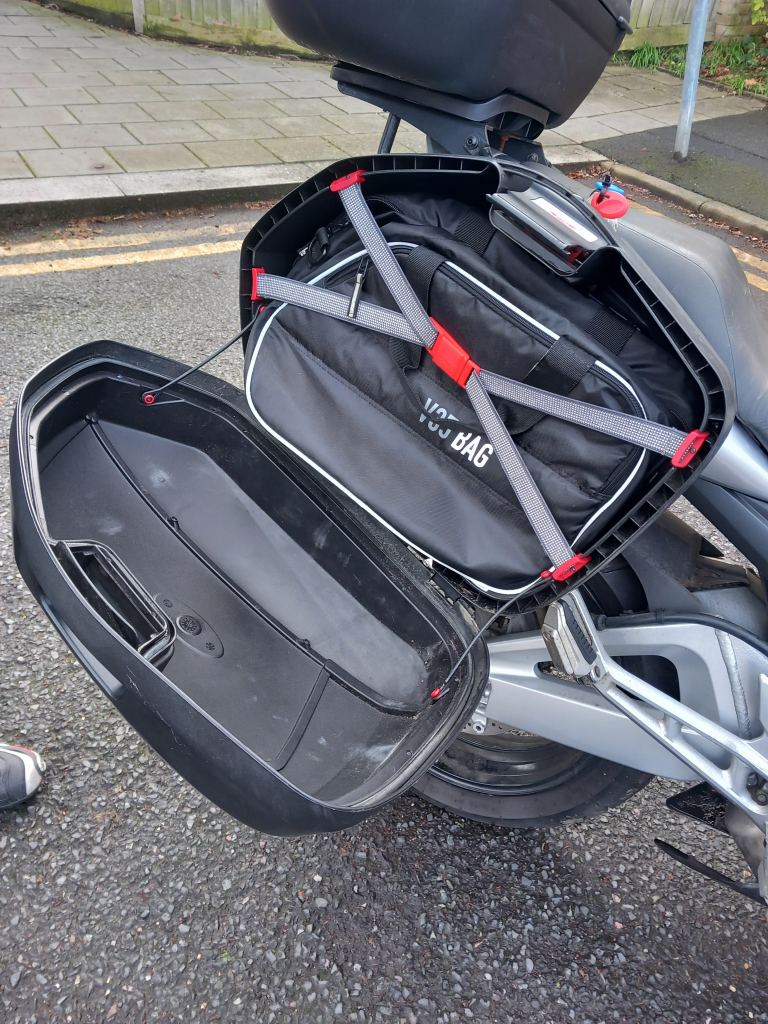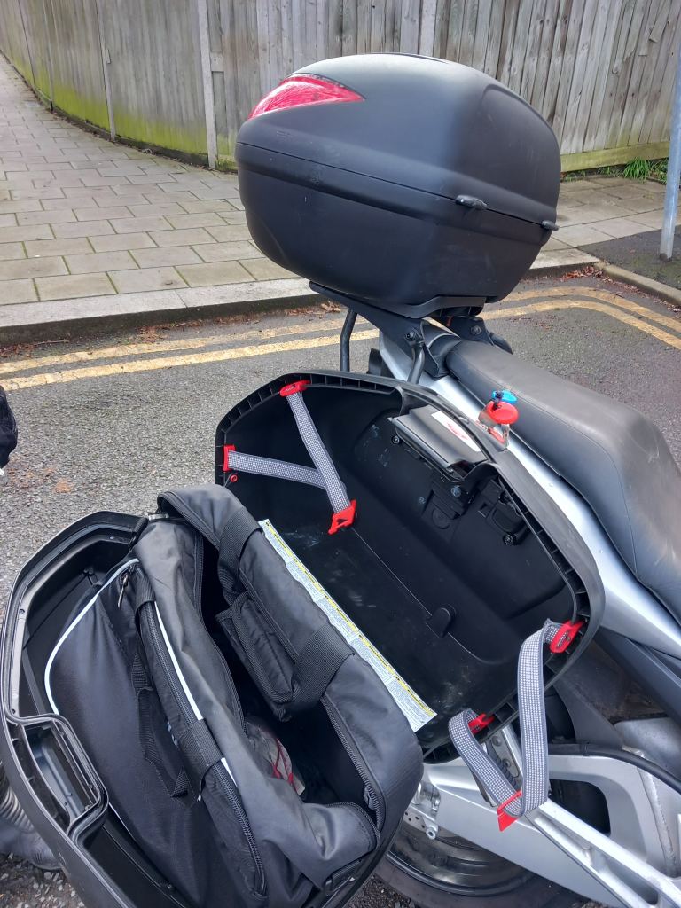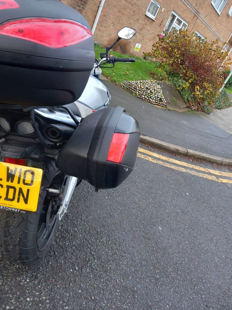 GIVI rack, removable panniers (see pics) and large fixed top box.