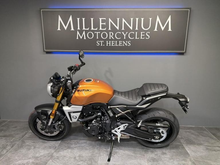 Drawn by designers in Italy and further sculpted in Japan, the 8T evokes the charm of classic bikes from the 70s and 80s, including the iconic Suzuki T500. The 8T is propelled by a 776cc DOHC 270° crank parallel twin engine focussed on dynamic performance. It delivers abundant torque for flexibility suited to a range of riders, paired with a powerful top end for an exciting and rewarding ride. Choose Millennium Motorcycles for your next bike. Buy with confidence from the North West’s leading Multi-franchise dealership. Your new bike will be inspected by one of our trained technicians. Part Exchange Welcome, Finance available and Nationwide delivery. WhatsApp on [Phone number removed]or call 01744 616161. Reserve or buy online at [Website URL removed] Come pay us a visit with our amazing clothing and accessories department and on site café.
