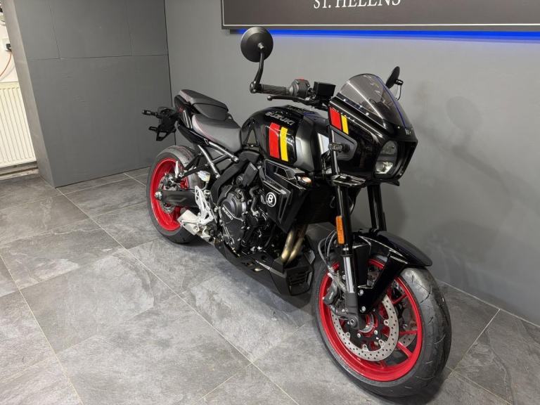 Influenced by road race machines of the 1970s and 1980s - such as the Yoshimura GS1000 AMA superbike - the 8TT wraps its award-winning engine in period race bike-inspired bodywork, finished with sporty detailing from the seat to the decals on the fairing and tank. The 8TT is propelled by a 776cc DOHC 270° crank parallel twin engine focussed on dynamic performance. It delivers abundant torque for flexibility suited to a range of riders, paired with a powerful top end for an exciting and rewarding ride. Choose Millennium Motorcycles for your next bike. Buy with confidence from the North West’s leading Multi-franchise dealership. Your new bike will be inspected by one of our trained technicians. Part Exchange Welcome, Finance available and Nationwide delivery. WhatsApp on [Phone number removed]or call 01744 616161. Reserve or buy online at [Website URL removed] Come pay us a visit with our amazing clothing and accessories department and on site café.