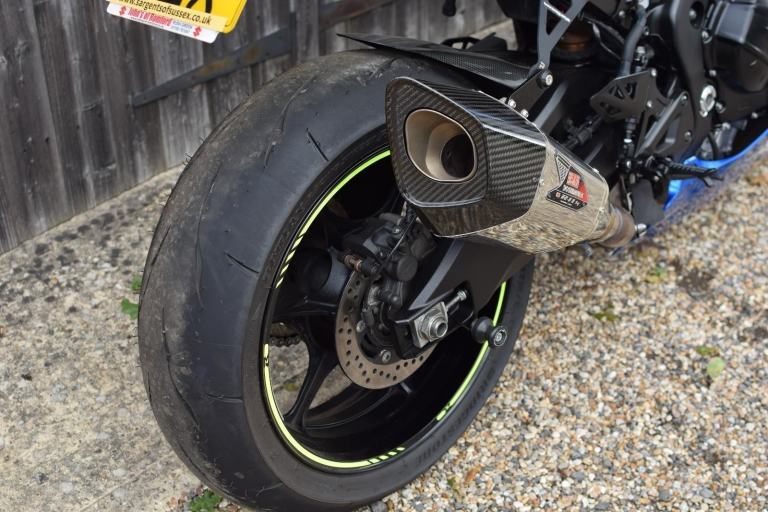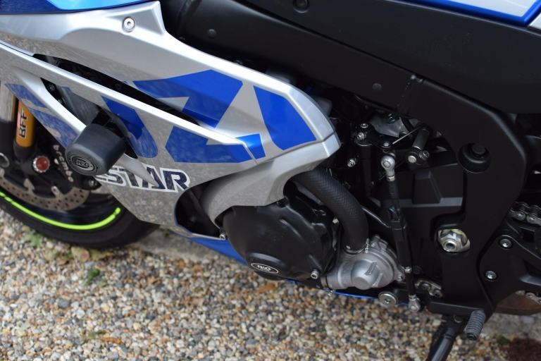 The original bill of sale shows the new cost to be £17458, which included dealer fitment of a Yoshimura R11 slip on exhaust, Suzuki tinted screen and tank pad, and R&G tail tidy. At it’s 1st service the supplying dealer fitted a Lightech Gloss Carbon Fibre rear hugger at a cost of £191, and a BIKETRAC Tracker at a cost of £350. Additionally, the bike has a Genuine Suzuki Accessories seat cowl, R&G ‘Aero’ frame protectors, R&G paddock stand bobbins, and light alloy exhaust hanger