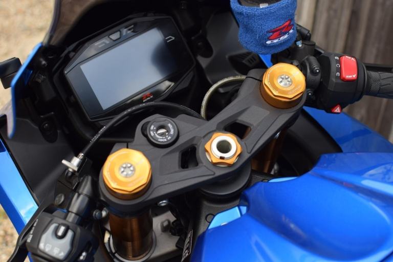 The impressive specification includes 2 way Quickshifter/Blipper, Controller Area Network wiring harness (CAN Bus) 10-mode Motion Track Track Traction Control System (MT-TCS) Inertial Measurement Unit (IMU) Suzuki Top Feed Injectors (S-TFI) Suzuki Exhaust Tuning (SET) Suzuki Ram Air Direct (SRAD) Suzuki Dual Throttle Valve (SDTV) Suzuki Drive Mode Selector (S-DMS) Suzuki Clutch Assist System (SCAS) Full LCD multifunction display, LED headlight and tail light, LED indicators, Gold finished Showa BFF Balance Free Forks, Showa ‘Balance Free Cushion Lite’ rear suspension, Brembo radially mounted calipers with Brembo T-Lock 320mm diameter discs, Electronic steering damper and Adjustable pegs