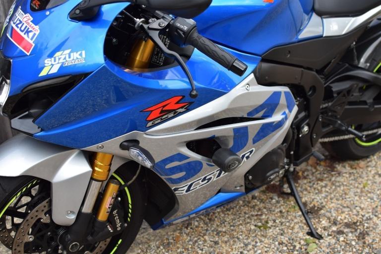 …just 100 were produced for the UK market, and they were finished in the gorgeous Moto GP scheme in Metallic Triton Blue/Metallic Mistic Silver, in itself a celebration of 60 years since Suzuki’s first entry into motorcycle racing