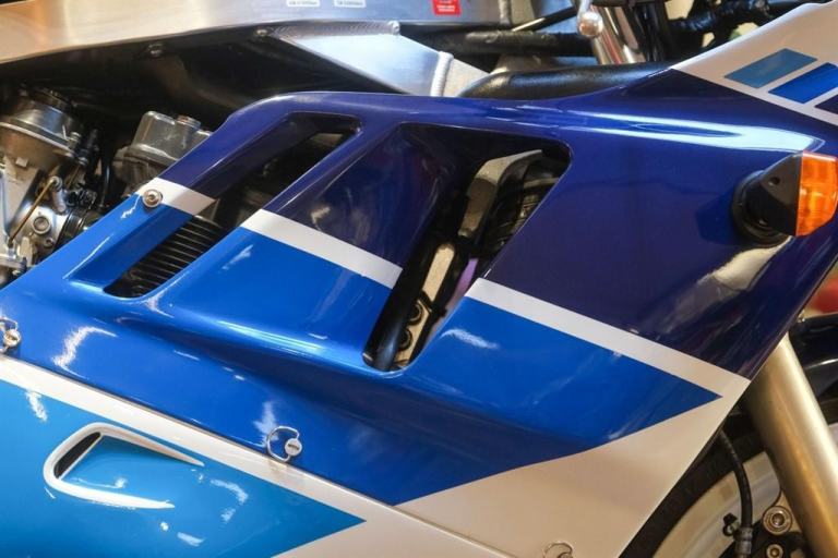 Here we have the rare opportunity to own our stunning super rare Suzuki GSX-750-RR/RK in the iconic blue and white paint scheme. We have been lucky enough to add this bike to our current stock. This homologation special was a direct competitor to the legendary Honda RC30, the Kawasaki ZXR750R and the Yamaha OW-01,