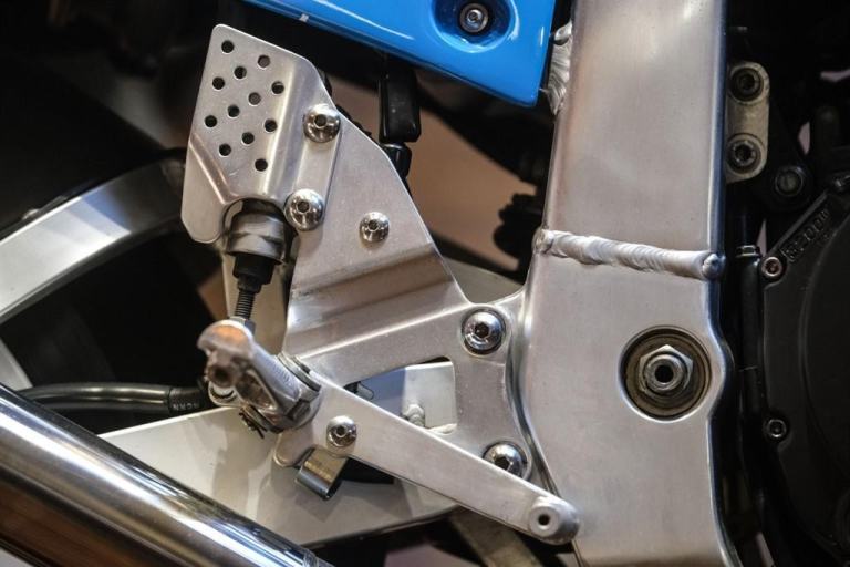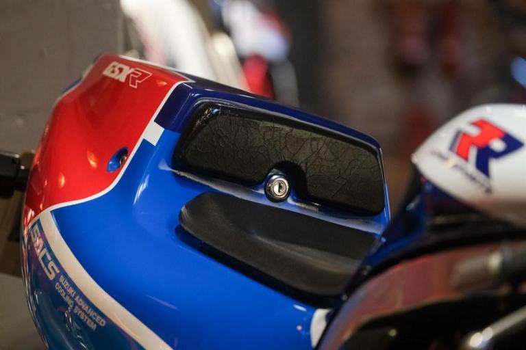In the long line of GSXR's, the ’89 “RK” model was considered by to be the most special of them all. The RK was also known as the RR and just 500 were built for homologation purposes, Suzuki lengthened the stroke of the motor to make it easier for race teams to tune, and there were extra goodies like a magnesium cylinder head cover, Mikuni BST-40 carb, close-ratio gearbox, stronger clutch with an additional plate, aluminum fuel tank, quick disconnect fiberglass bodywork, wider wheels, lower handlebars, repositioned footpegs, thinner seat, 43mm front fork with rebound and compression adjustment, and 310mm front disc brakes.