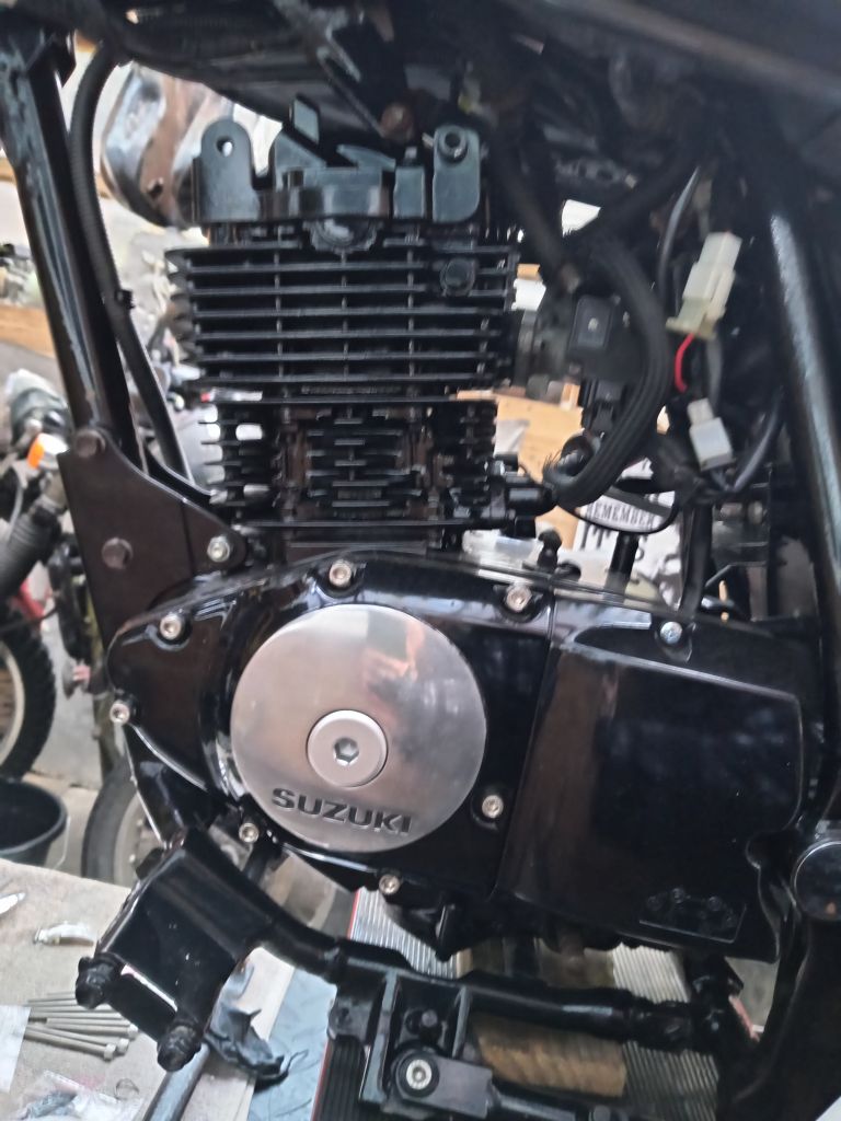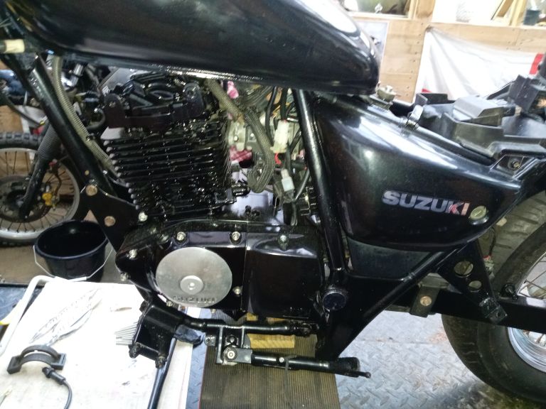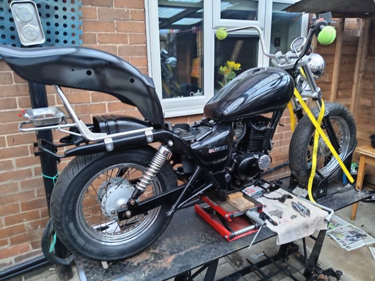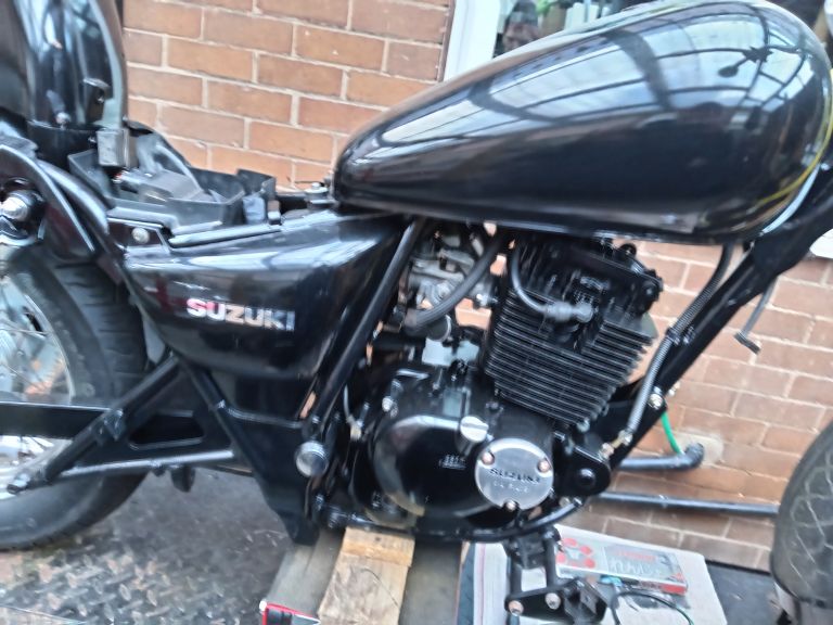 Gz 125 project 85%finished real easy project too much to list but here goes.. Owned 2 of these one carb and one fuel injected this is the fuel injected. I've top coated and laquerd all paintwork powder coated frame and swing arm new chain and sprockets. Had engine out to paint (vht gloss). Rechromed plenty of parts. Reason for sale no time due to building new workshop I've all paperwork v5 ect. There is small parts missing like seat left foot hanger easy parts to find. Too much to list plenty of spares from the carb version spare wheel tank frame plus other small parts somewhere I will dig them out. Too much to list so any questions please msg