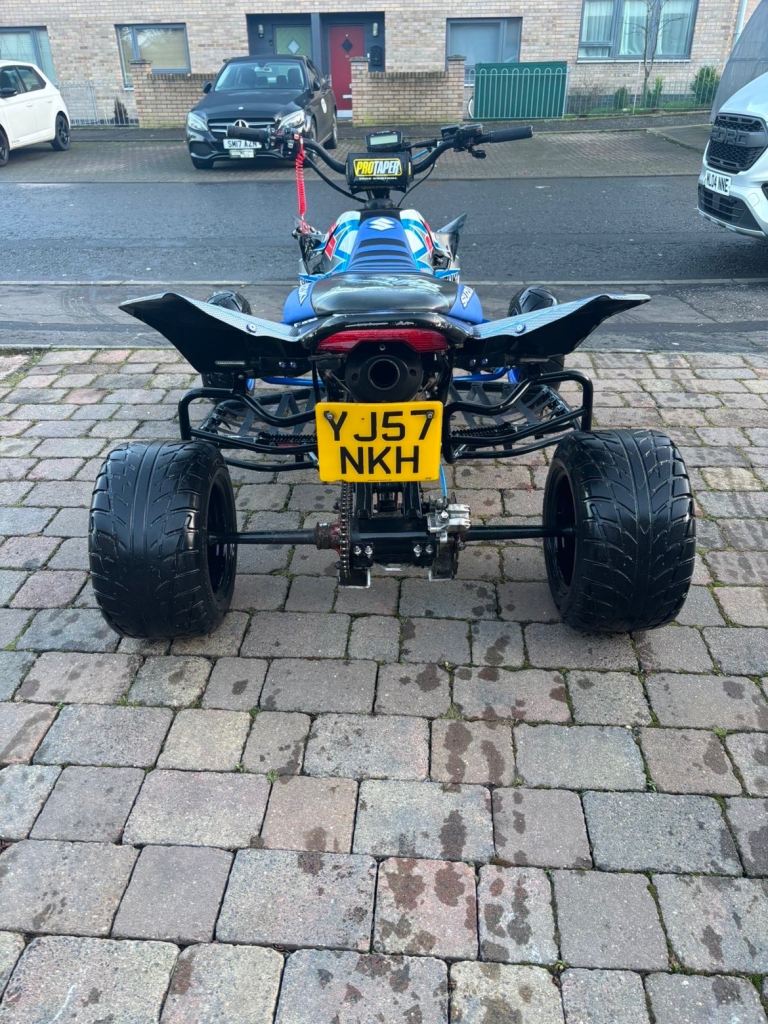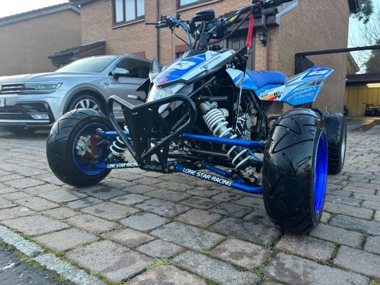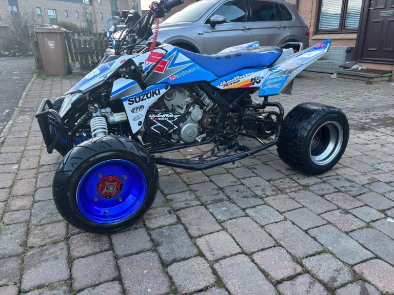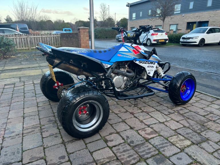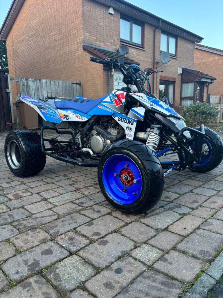 Road legal Suzuki LTR 450, bored out to a 500cc bigger head etc, upgraded fan, upgraded lowered suspension easily raised, upgraded graphics and seat cover, lights indicators and handbrake all work as should, starts first touch or the button, mot till July, ready to get on and use, this quad goes very well, any viewing and inspection is welcome thanks.