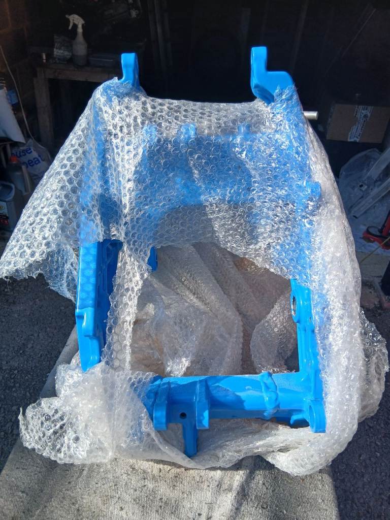 Both have been powder coated in a sky blue type colour.
