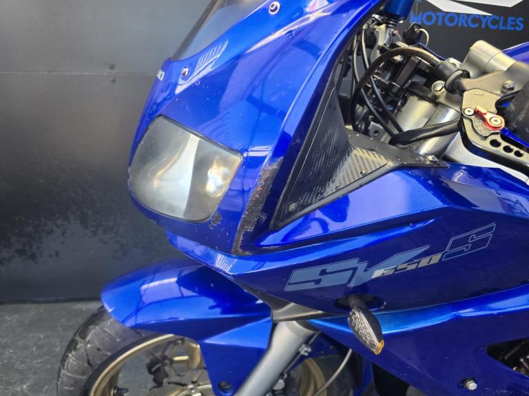 Here we have for sale a Suzuki SV 650 S as a project bike in overall good condition. This bike starts on the button, the engine sounds good. As shown, there is a small tear in the seat and some damage to the offside fairing. The electrics are functional bar the rear brake light, the tyres are in good condition. It is fitted with a Scorpion exhaust and a tail tidy. The MOT expires 27/05/2026, it will want a thorough check over. We have the V5 for this bike.