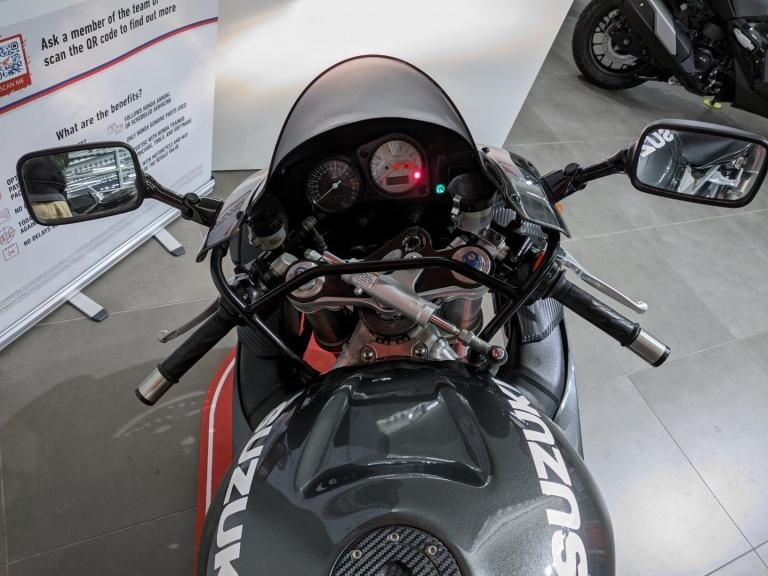 If you know anything about these then you'll know what a bonus it is to have the Maxton rear suspension conversion with a Maxton shock, as well as the Maxton internals on the front. The bike itself is in great condition, looking resplendent in it the gunmetal grey metallic paintwork and it has a very modest mileage for its age. Fitted with UK made Quill exhausts, the bike also has the standard exhausts available.