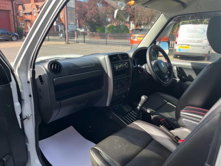 LADY OWNED SUZUKI JIMNY 1.3 SZ4 IN WHITE WITH FULL BLACK LEATHER , AIR CONDITIONING, ELECTRIC WINDOWS, BLUETOOTH , 2 KEYS , FULL SERVICE HISTORY WITH 9 STAMPS IN THE SERVICE BOOK, , EXTRA SPOT LIGHTS ON THE FRONT , WELL LOOKED AFTER AND IN SUPERB CONDITION AND SPOTLESS INSIDE, 4 WHEELS DRIVE , FULL MATCHING TYRES, FINANCE AND PART EXCHANGE AVAILABLE, BUY WITH CONFIDENCE FROM A DEALERSHIP SERVING ITS CUSTOMERS FOR OVER 80 YEARS, PLEASE RING THE OFFICE ON 01405 812345 OR VISIT [Website URL removed] Inspection Welcome, Click Website for all stock, Air Conditioning, Alarm, Passenger Airbag, Full Airbags, Electric Windows, Power Assisted Steering, Remote Key Locking, Alloy Wheels, Colour Coded Bumpers, Colour Coded Mirrors, Front Fog Lamps, Rear Wash Wipe, Tinted Glass, Immobiliser, Central Locking, Driver Airbag, Electric Mirrors, Rear Head Rests, Radio CD, Full Service History, 2 Owners from New, Leather upholstery, Low tax / Insurance, Warranty, High level brake light,