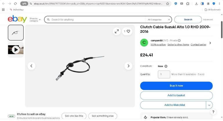 New clutch cable is around £25 from UK seller on Ebay, or £12 from a seller in India.