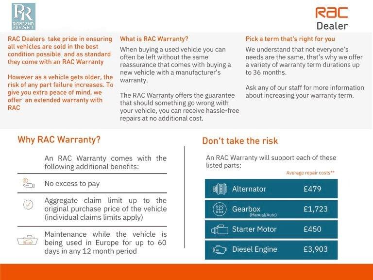 * RAC warranty, breakdown cover & accident care with every vehicle.