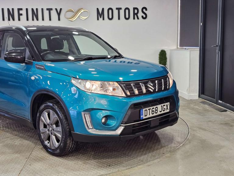 Infinity Motors presents the Suzuki Vitara - the perfect blend of style, performance, and practicality. This 1.0 Vitara SZ-T Boosterjet 5dr model is a true standout in the crowd, finished in a stunning Turquoise colour that is sure to turn heads wherever you go.With only 2 previous owners, this Suzuki Vitara is ready to hit the road with you behind the wheel. The SZ-T Boosterjet trim level offers a range of premium features, including a powerful yet efficient 1.0-litre engine that delivers a thrilling driving experience.Spec:- Cloth interior - 17 inch multispoke alloys- Bluetooth, Satnav, Cruise Control, Reversing camera and much more (please see EXTRA FEATURES section for full list)History: It will come with a standard three month engine and gearbox warranty. Comes with full service history. Serviced at the following intervals: 9,533 miles, 15,121 miles, 20,492 miles, 30,546 miles, 42,520 miles, 55,134 miles, 66,658 miles, 79,594 miles, 91,082 miles. HPI clear. Additional services: - Extendable warranty up to 2 years available- Nationwide delivery (T&Cs apply)- Finance available- Bespoke virtual viewings can be arranged at request- Viewing by appointment only. Please speak to a member of our team for any additional charges. All of our cars now come with free MOT's for life*• Terms and conditions apply.**please call to verify the exact specifications and features of the car**