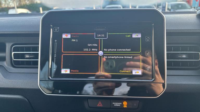 The Suzuki Ignis Hatchback 1.2 Dualjet 12V Hybrid SZ-T 5dr is a smart choice for drivers who want a fun, efficient, and versatile car that’s easy to live with every day.Its 1.2 Dualjet engine with mild hybrid technology boosts fuel efficiency and reduces emissions, helping you save on running costs while still delivering responsive performance around town and on the open road. The compact size makes city driving and parking simple, allowing you to navigate tight streets with confidence.Inside, the Ignis offers a surprisingly roomy feel for its size, with clever interior packaging that gives passengers plenty of space. The elevated driving position gives you good forward visibility and a sense of control behind the wheel. The rear seats can be folded down to create a flexible cargo area, making it easier to carry shopping, luggage, or larger items when you need to.The SZ-T trim includes a generous selection of features that add comfort and convenience to your journeys. Things like a touchscreen infotainment system, air conditioning, and connectivity options help keep everyone comfortable and entertained.On the road, the Ignis feels agile and lively, with light steering and a compact footprint that make it great for urban environments. At the same time, its efficient hybrid system and smooth driving character mean it’s comfortable for longer trips too.Overall, the Suzuki Ignis 1.2 Dualjet 12V Hybrid SZ-T combines efficiency, practicality, and everyday usability into a stylish and friendly hatchback that fits well with a busy, active lifestyle..Air Conditioning, Alloy Wheels, DAB Radio, Bluetooth, Stop Start, Low Mileage, USB, Rear Camera& Auto Lights, Electric front windows, Rear privacy glass, 2 speeds front wiper with intermittent + washer, 1 speed rear wiper + washer, Green tinted windows, Emergency stop signalling system, Dual camera brake support, ESP, ABS+EBD+Brake assist, Hill hold control, Lane departure warning, Power Steering, Rear parking camera, Emergency services call system, Remote fuel lid opener, Engine auto start/stop system, Weaving alert, Tachometer, Digital clock, Low fuel warning light, Fuel consumption screen, Door ajar warning lamp, Outside temperature display, Smartphone integration with Apple CarPlay and Android auto, Smartphone link audio display, Hybrid system indicator, Engine oil change reminder, Driving range indicator, Average speed indicator, Body colour door mirrors, Electric adjustable door mirrors, Black instrument panel