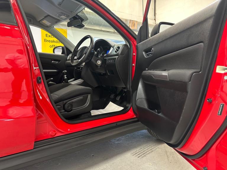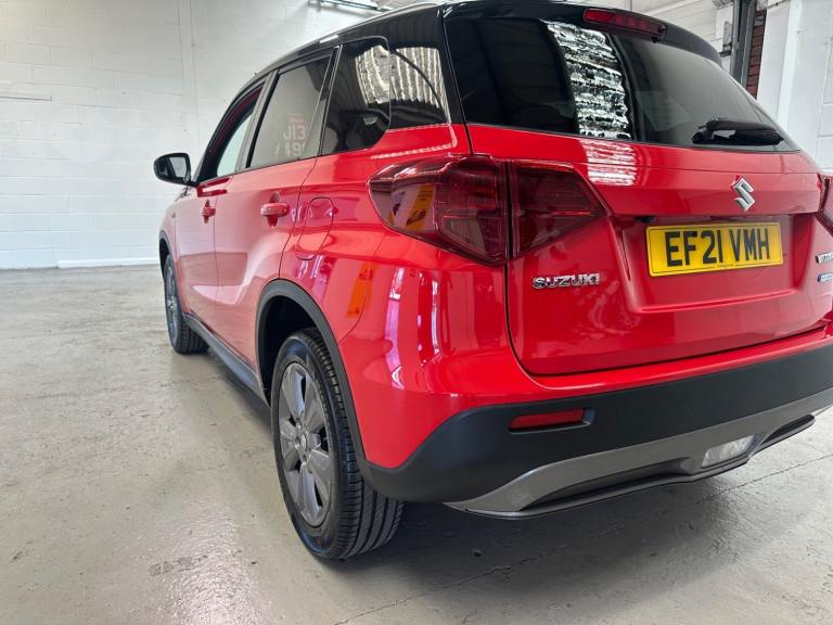 **24 MONTHS PARTS & LABOUR WARRANTY** Hailsham Motoring Centre are pleased to be offering this ULEZ compliant 2021 Suzuki Vitara1.4 Boosterjet 48V Hybrid SZ-T 5dr hatchback,for sale, with ONLY ONE OWNER FROM NEW and 19,100 miles. This car comes with a MAIN DEALER SERVICE HISTORY. The car will leave with an interim service, a new MO,T and a PDI. Finished in Bright Red & Cosmic Black Pearlwith charcoal cloth trim. **WHY BUY FROMUS** **Established In 1980** **24 Month Warranty On AllCars & vans Over £4500, & Those Not Covered By A Manufactures Warranty** ** All Our Cars Are Hpi Clear So You Can Buy With Confidence** **Competitive Finance RatesSubject To Status** **Multi Branches** **Open 7 Days a Week Inc Bank Holidays** **Monday - Friday - 8.30amto 6pm** **Saturday - 9.00am to 5pm** **Sunday - 10am to 4pm** **Bank holidays 10am to 4pm** For more pictures and a walk around video please go to [Website URL removed] Please call to arrange viewing and a test drive on01323 449900. Here at Hailsham Motoring Centre, we have up to 50 cars& a small selection vans on show, also at our Hampden Park branch we have up to 50 further cars & a small selection vans available for viewing, please call 01323 507307 for more info. For more information on our Vitaraplease see the benefits below as stated Features Include: , adaptive cruise control, blind spot monitor, bluetooth integrated into audio unit, door ajar warning lamp, emergency stop signalling system, engine oil change reminder, engine start/stop button, lane departure prevention, lane departure warning system, navigation system, pas, rear cross traffic alert, rear parking camera, service indicator, smartphone link display with apple carplay and android auto, speed limiter, tachometer, traffic sign recognition, 4 speakers, 4.2-inch colour lcd display, dab digital radio, steering wheel mounted audio controls, usb connection, 1 speed with intermittent rear wiper + washer, 2 speeds (low/high) with adjustable intermittent front wiper + washer, automatic front rain sensing wipers, automatic headlamp levelling, automatic headlights, body colour door mirrors and handles, body coloured bumpers, chrome front grille, chrome lower front bumper insert, electric adjustable heated door mirrors, electric front+rear windows, front fog lamps, green tinted windows, high mounted stop lamp, led daytime running lights, led multi reflector headlamps with low and high beam, led rear