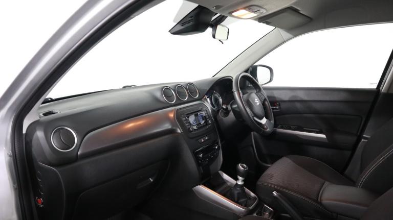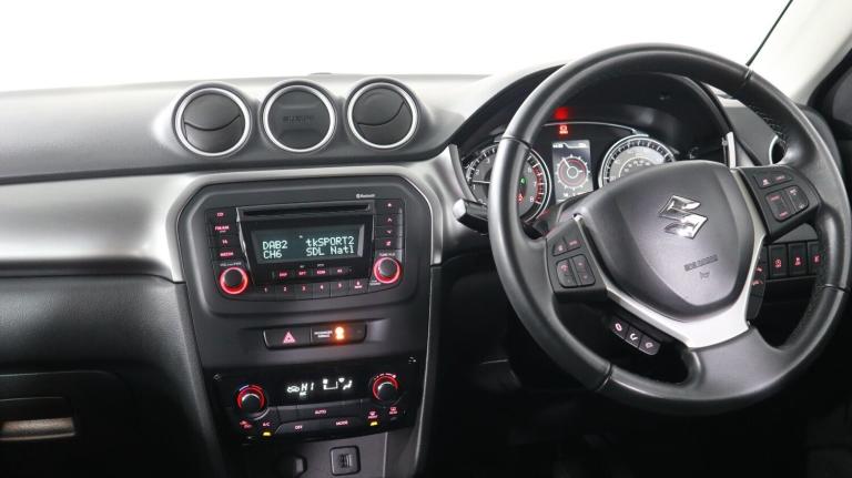 .This 2021 Suzuki Vitara SZ4 is a remarkable find, boasting exceptionally low mileage for its year at just 21,789 miles. This particular model is equipped with a fuel efficient 1.4 litre petrol hybrid engine, meeting Euro 6 emission standards. For your peace of mind and convenience, it features a Blind Spot Monitor with Blind Spot Assistance, Adaptive Cruise Control, and Automatic Air Conditioning. You can also stay connected on the go with the integrated Bluetooth system. The Vitara SZ4 offers an impressive fuel economy of 53 miles per gallon, making it a cost effective choice for your driving needs. These highlighted features, such as the advanced safety systems and the efficient hybrid powertrain, demonstrate how this Suzuki Vitara stands out from other vehicles in its class, providing a superior driving experience..Adaptive cruise control, Blind spot monitor, Bluetooth integrated into audio unit, Door ajar warning lamp, Emergency stop signalling system, Engine oil change reminder, Engine start/stop button, Lane departure prevention, Lane departure warning system, PAS, Rear cross traffic alert, Service indicator, Speed limiter, Tachometer, Traffic sign recognition, 4 speakers, 4.2-Inch Colour LCD display, CD player, DAB Digital radio, Steering wheel mounted audio controls, USB connection, 1 speed with intermittent rear wiper + washer, 2 speeds (low/high) with adjustable intermittent front wiper + washer, Automatic front rain sensing wipers, Automatic headlamp levelling, Automatic headlights, Body colour door mirrors and handles, Body coloured bumpers, Chrome front grille, Chrome lower front bumper insert, Electric adjustable heated door mirrors, Electric front+rear windows, Front fog lamps, Green tinted windows, High mounted stop lamp, LED daytime running lights, LED multi reflector headlamps with low and high beam, LED rear combination lamp, Low fuel warning lamp, Rear fog lamps, Rear window demister, Silver roof rails, Visible VIN plate, Wheel arch extensions with side skirts, 12V Accessory socket in centre console, 12V Accessory socket in the load area, 2x Front and rear door bottle holders, 3 rear headrests, 3 spoke leather covered steering wheel, 60/40 split folding rear seat, Automatic air conditioning, Black shift knob with silver accent, Centre cabin light, Child seat tether anchorage points x3, Chrome hand brake release, Chrome interior door handles, Driver/front passenger seat height adjustment, Driver/passenger sunvisors with ticket holders