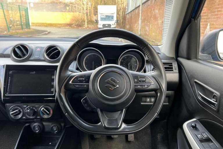 This 2022 Suzuki Swift SZ-L is a superb example, having had only one owner since new. It features a responsive 1.2 litre petrol hybrid engine, meeting Euro 6 emissions standards. For your peace of mind, the MOT is valid until January 2027. This SZ-L model comes equipped with a helpful rear parking camera for easier manoeuvring, and striking LED projector headlamps with integrated LED position lamps for enhanced visibility. Experience effortless driving with the integrated Bluetooth system, allowing for seamless phone connectivity, and adaptive cruise control to maintain a set speed on longer journeys. This Suzuki Swift SZ-L boasts an impressive fuel economy of 60 miles per gallon, a highlight that sets it apart from many other vehicles in its class. This combination of efficiency, advanced features, and excellent provenance makes it a compelling choice. Lifetime warranty available on this car, plus a £1,000 finance contribution when you part exchange. Voted UK Car Supermarket of the Year two years running, we offer 0% finance, part exchange, and lifetime warranties across our entire range. Every car is thoroughly inspected before sale and comes with a full history check, so you can buy with complete peace of mind. Buy with confidence on our best finance rates. Proud winners of the CarGurus Top-Rated Dealer 2022 and the MotoNovo Extra Mile Award. .16in Alloy Wheels - Polished, 3 Cup Holders x2 Front - x1 Rear, 3-Spoke Leather Covered Steering Wheel, 4.2in Colour LCD Display, ABS with EBD and Brake Assist Function, Adaptive Cruise Control, Automatic Headlamp Levelling, Automatic Headlamps, Black Coloured A and B Pillars, Bluetooth Integrated into Audio Unit, Body Coloured Exterior Door Handles, Centre Console with Storage, Centre Lower Box, Child Seat Tether Anchorages x 2, Childproof Rear Door Locks, Chrome Hand Brake Release Button, Chrome Interior Door Handles, DAB Digital Radio, Deadlocks, Driver and Front Passenger Airbags, Driver Seat Height Adjuster, Electric Front Windows, Electrically Adjustable and Heated Door Mirrors, Emergency Flat Tyre Repair Kit, ESP - Electronic Stability Program, Fabric - Black, Foot Protecting Brake and Clutch Pedals, Freewheeling Key Cylinders, Front 3-Point ELR Seatbelts, Front Accessory Socket, Front and Rear Seatbelt Reminder, Front Assist Grips Passenger Side, Front Cabin Light, Front Fog Lights, Front Grille - Chrome and Black, Front Map Light, Front Passenger Airbag Deactivation System, Front Passenger Side Seatback Pocket, Front Sunvisors with Vanity Mirrors and Ticket Holder, Front Wiper with Adjustable Intermittent, Fuel Consumption Display - Average-Instantaneous and Range, Gear Shift Indicator, Glove Box, Green Tinted Windows, Guide Me Home Light Function, Heater, High Beam Assist, High Mounted Brake Light, Hill Hold Control, Immobiliser, ISOFIX Child Seat Anchorages, LED Daytime Running Lights - Integrated in Headlamps, LED Position Lamps, LED Projector Headlamps, LED Rear Combination Lights, Lights-On and Key-In Reminder, Low Fuel Warning Light, Luggage Area Shelf and Lamp, Manual Air Conditioning, Outside Temperature Display, Pollen Filter, Power Steering, Radar Brake Support, Rear 3-Point ELR Seatbelts, Rear Fog Lamps, Rear Parking Camera, Rear Privacy Glass, Rear Seat Head Restraint x2, Rear Seat with 60-40 Split Folding, Rear Wiper with Intermittent, Remote Central Door Locking, Side and Curtain Airbags, Side Impact Protection Beams, Smartphone Linkage Display Audio, Speakers x4, Speedy Blue, Steering Wheel - Tilt-Adjustable, Steering Wheel Mounted Audio Controls, Storage Pocket with Bottle Holder in All Doors, Tachometer, TPMS - Tyre Pressure Monitoring System, USB and AUX Connectors - Console Box, White Instrument Panel and Front Door Trim