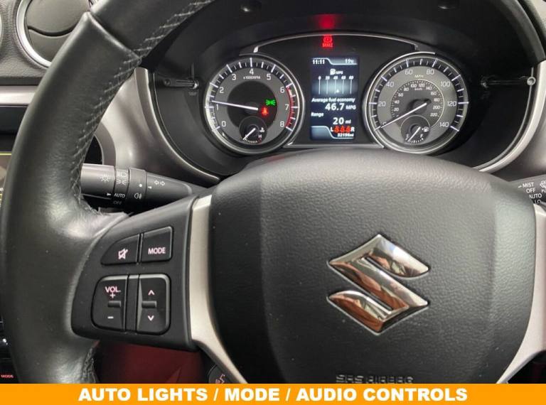 This 2022 Suzuki Vitara SZ T presents a superb ownership proposition, having been meticulously maintained by just one owner from new with Suzuki main dealer service history. This stylish SUV is powered by an efficient 1.4 litre petrol hybrid engine, meeting Euro 6 emission standards. Inside, youll find a wealth of modern technology designed for convenience and safety, including a Blind Spot Monitor with Blind Spot Assistance, and a rear parking camera for effortless manoeuvring. Stay connected and entertained with the integrated Bluetooth system and the Smartphone Linkage Display Audio, which seamlessly supports both Android Auto and Apple CarPlay. Experience impressive fuel economy with this Vitara, achieving a remarkable 53 miles per gallon, a figure that highlights its efficiency compared to many other vehicles in its class. Furthermore, its low CO2 emissions contribute to a more environmentally conscious drive. The automatic air conditioning with climate control ensures a comfortable cabin temperature in all conditions, making every journey a pleasure. This SZ T variant offers a compelling blend of practicality, advanced features, and economical running costs. ADVERTISING DISCLAIMER: OTHER THAN ON THE [Website URL removed] WEBSITE OUR VEHICLES WILL BE FOUND ADVERTISED ON OTHER SITES THAT OPERATE A PRICE GUIDE SYSTEM "HIGH PRICE" / "GOOD PRICE" / "FAIR PRICE" ETC. PLEASE BE AWARE THAT WHILST THIS MAY APPEAR AS A USEFUL TOOL WHEN SEARCHING FOR YOUR NEW CAR, NONE OF THESE BUSINESSES ACTUALLY BUY OR SELL MOTOR VEHICLES. THESE SYSTEMS DO NOT TAKE INTO ACCOUNT THE QUALITY OF SERVICE WE DELIVER AS A COMPANY OR THE ACTUAL CONDITION / SPECIFICATION OF THE CAR IN TERMS OF DESIRABLE FACTORY OPTIONS THAT MAY BE FITTED. IN THE RARE EVENT THAT OUR VEHICLE FALLS INTO THE "HIGH PRICE" CATEGORY THERE WILL BE A VERY GOOD REASON FOR THIS BEING THE CASE. PLEASE BE AWARE THAT SOME OF THE INFORMATION RELATING TO THE DESCRIPTIONS OF THE VEHICLES ON THIS WEBSITE IS AI GENERATED AND MAY NOT BE 100% ACCURATE, OUR SALES TEAM ARE HAPPY TO ANSWER ANY QUESTIONS THAT YOU MAY HAVE REGARDING THE VEHICLE OF INTEREST..12V Accessory Socket - Centre Lower Box, 12V Accessory Socket - Luggage Area, 17in Alloy Wheels - Painted Finish, 2 x Front Cup Holders, 2 x Front Door and 2 x Rear Door Bottle Holders, 3-Spoke Leather Covered Steering Wheel, 4.2in Colour LCD Display, ABS with EBD and Brake Assist Function, Adaptive Cruise Control, Automatic Air Conditioning, Automatic Headlamp Levelling, Automatic Headlamps, Automatic Wiper, Blind Spot Monitor, Bluetooth Integrated into Audio Unit, Body Coloured Exterior Door Handles, Body Coloured Exterior Door Mirrors, Centre Cabin Light, Child Seat Tether Anchorages x 3, Childproof Rear Door Locks, Chrome Dashboard Trim Ring Set, Chrome Hand Brake Release Button, Chrome Interior Door Handles, Chrome Lower Front Bumper Trim, Coloured Instrument Panel Ornament, Curtain Airbags, DAB Digital Radio, Daytime Running Lights - LED, Deadlocks, Door Ajar Warning Light, Driver and Front Passenger Airbags, Driver and Front Passenger Seat Height Adjuster, Driver Knee Airbag, Dual Sensor Brake Support - AEB, Electric Front Windows, Electric Rear Windows, Electrically Adjustable and Heated Door Mirrors, Emergency Flat Tyre Repair Kit, Emergency Stop Signal, Engine Auto Stop Start System, Engine Oil Change Reminder, ESP - Electronic Stability Program, Fabric - Black with White Stitching, Fabric Door Trim Insert Front, Foot Rest - Driver Side, Freewheeling Key Cylinders, Front 3-Point ELR Seatbelts with Pretensioners - Force Limiters and Shoulder Height Adjusters, Front and Rear Seatbelt Reminder, Front Centre Armrest, Front Fog Lights, Front Footwell and Centre Lower Console Box Lights, Front Grille - Chrome, Front Map Light, Front Passenger Airbag Deactivation System, Front Sun Visors with Vanity Mirrors and Ticket Holders, Front Vanity Mirror Illumination, Front Wiper - 2 Speeds - Low - High with Adjustable Intermittent Plus Washer, Glovebox Light, Green Tinted Windows, Heater, High Mounted Stop Lamp, Hill Hold Control, Immobiliser, ISOFIX Child Seat Anchorages x 2, Lane Departure Prevention, Lane Departure Warning, LED Multi-Reflector Headlamps - Low and High Beam, LED Rear Combination Lights, Lights-On and Key-In Reminder, Locking Wheel Bolts, Low Fuel Warning Light, Luggage Area Cover, Luggage Area Light, Navigation System, Passengers Side Assist Grips, Pollen Filter, Power Steering, Rain Sensing Front Wipers, Rear 3-Point ELR Seatbelts with Pretensioner and Force Limiter - Sides, Rear Assist Grips x2, Rear Cross Traffic Alert, Rear Fog Lamps, Re
