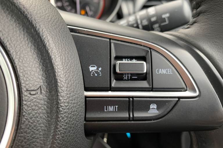..Adaptive cruise control, Automatic start/stop system, Blind spot monitoring, Colour LCD information display, Fuel consumption screen, Gear position indicator, Lane departure warning system, Lights on warning, Low fuel level warning light, Outside temperature display, PAS, Rear cross traffic alert, Rear parking camera, Rear parking sensors, Remote fuel cap release, Smartphone integration with Apple CarPlay and Android auto, Speed limiter, Tachometer, Tailgate, Traffic sign recognition, Trip computer, Weaving alert, 4 speakers, Auxiliary input socket, Bluetooth audio streaming, DAB Digital radio, Steering wheel audio controls, USB interface, 'Guide me home' headlamps, 2 speed wipers+intermittent wipe, Automatic headlights, Black coloured A & B pillars, Black front grille chrome, Body colour door handles, Body coloured bumpers, Electric door mirrors, Electric front windows, Front fog lights, Green tinted glass, Headlamp levelling, Heated door mirrors, High beam assist, High mounted stop lamp, LED daytime running lights, LED position lamps, LED projector headlamps with DRL, LED rear combination lamp, Rear fog lights, Rear privacy glass, Rear wiper, 12V Accessory socket in front console, 2 Isofix seat anchors, 3 cupholders, 3 spoke leather covered steering wheel, 60/40 split rear seats, Accessory socket, Air conditioning, Centre console storage, Centre lower box, Chrome handbrake release button, Chrome interior door handles, Cloth seat trim, CVT shift lock, Door pockets with bottle holder, Driver/passenger sunvisors with ticket holders + vanity mirrors, Front head restraints, Front map light, Front passenger side assist grip, Gearshift paddles, Glovebox, Heater, Height adjustable driver's seat, Luggage area lamp, Passenger seat back pocket, Pollen filter, Rear headrests, Tilt adjustable steering wheel, Top tether anchor plate for isofix child seat, 3 point ELR seatbelts for centre seat, 3 point ELR seatbelts front and rear, ABS+EBD+Brake assist, Curtain airbags, Driver airbag, Dual sensor brake support, ESP + traction control, Foot protecting brake and clutch pedals, Front and rear seatbelt reminder, Front passenger airbag deactivation, Front seatbelt pretensioners with force limiters, Height adjustable front seatbelts, Hill hold control, Passenger airbag, Rear child proof door locks, Rear seatbelts with pre-tensioners and load limiters, Side airbags, Side impact protection beams, Tyre pressure indicator, Alarm, Deadlocks, Freewheeling key cylinders,