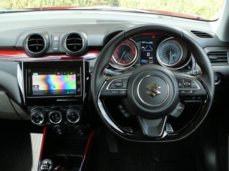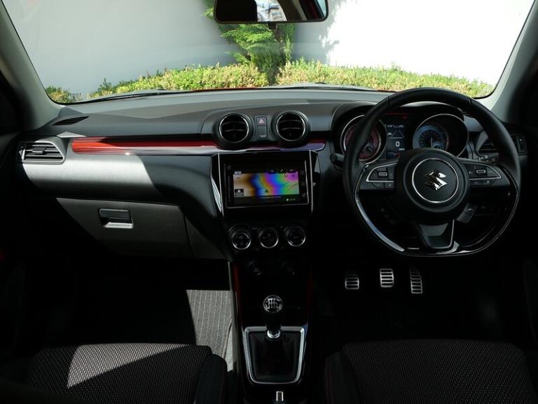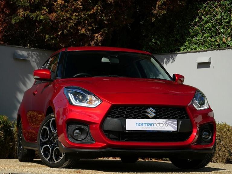 Sport Exclusive - Black,Burning Red Pearl, 12V Accessory Socket - Centre Console, 4.2in Colour LCD Display, Bluetooth Integrated into Audio Unit, DAB Digital Radio, Front Tweeters x 2, Navigation System, Roof Mounted Antenna, Smartphone Linkage Display Audio, Speakers x4, USB and AUX Connectors - Console Box, Adaptive Cruise Control, Blind Spot Monitor, Digital Clock, Door Ajar Warning Light, Fuel Consumption Display - Average-Instantaneous and Range, Lane Departure Warning, Lights-On and Key-In Reminder, Low Fuel Warning Light, Outside Temperature Display, Rear Parking Camera, Rear Parking Sensors, Tachometer, TPMS - Tyre Pressure Monitoring System, Traffic Sign Recognition, Tyre Pressure Indicator, Weaving Alert, 17in Alloy Wheels - Polished Finish, Black Coloured A and B Pillars, Body Coloured Exterior Mirrors and Door Handles, Door Mirrors with Built-In Turn Signal Lamps, Dual Exhaust Pipes, Electric Front Windows, Electric Rear Windows, Electrically Folding Door Mirrors, Emergency Flat Tyre Repair Kit, Green Tinted Windows, Locking Wheel Bolts, Rear Fog Lamps, Rear Privacy Glass, Rear Upper Spoiler, Rear Window Demister, Side Under Spoiler, Automatic Headlamp Levelling, Automatic Headlamps, Front Fog Lights, Guide Me Home Light Function, High Beam Assist, High Mounted Brake Light, LED Daytime Running Lights - Integrated in Headlamps, LED Projector Headlamps, LED Rear Combination Lights, 2 x Front Door and 2 x Rear Door Bottle Holders, 3 Cup Holders x2 Front - x1 Rear, 3-Spoke Leather Covered Steering Wheel, Automatic Air Conditioning, Centre Console with Storage, Centre Lower Box, Chrome Hand Brake Release Button, Chrome Interior Door Handles, Driver Seat Height Adjuster, Fabric Door Trim Insert Front, Foot Protecting Brake and Clutch Pedals, Foot Rest - Driver Side, Front Assist Grips Passenger Side, Front Map Light, Front Passenger Side Seatback Pocket, Front Sunvisors with Vanity Mirrors and Ticket Holder, Glove Box, Heater, Luggage Area Shelf and Lamp, Pollen Filter, Rear Assist Grips x2, Rear Seat with 60-40 Split Folding, Rear Seats with Head Restraint x3, Remote Fuel Lid Opener, Shift Knob Piano Black with Chrome Accent, Steering Wheel - Tilt-Adjustable, Steering Wheel Mounted Audio Controls, Storage Pockets in Front Doors, Telescopic Adjustable Steering Wheel, Engine Auto Stop Start System, Power Steering, Speed Limiter, ABS with EBD and Brake Assist Function, Childproof Rear Door Locks, Curtain Airbags, Deadlocks, Driver and Front Passenger Airbags, Dual Sensor Brake Support - AEB, ESP - Electronic Stability Program, Freewheeling Key Cylinders, Front 3-Point ELR Seatbelts with Pretensioners - Force Limiters Head Restraints - Sports Integrated Type and Shoulder Height Adjusters, Front and Rear Seatbelt Reminder, Front Passenger Airbag Deactivation System, Hill Hold Control, Immobiliser, ISOFIX Child Seat Anchorages x 2, Keyless Entry and Start, Lane Departure Prevention, Rear 3-Point ELR Seatbelts with Pretensioners - Force Limiters x2 and 3-Point ELR Seatbelt for Centre Seat, Rear Cross Traffic Alert, Remote Central Door Locking, Security Alarm, Side Airbags - Incorporated into Front Seats, Side Impact Protection Beams.Norman Motors are pleased to welcome this superb Suzuki Swift 1.4 Boosterjet MHEV Sport Hatchback which is equipped with Rear View Camera & Adaptive Cruise Control with Full Suzuki Service History (last serviced 02/09/2025 @ 7,262 miles). Presented here in Burning Red Pearl with Black Sport Exclusive Upholstery. Upgrades and features include: 17"" Polished Finish Alloy Wheels, Adaptive Cruise Control, Lane Departure Warning, Keyless Entry & Go, Reversing Camera, Apple CarPlay / Android Auto, Rear Privacy Glass, LED Daytime Running Lights, Digital Climate Control, Power Folding Mirrors, 3-Spoke Leather Covered Multifunction Steering Wheel, Navigation System, Bluetooth, DAB Radio.If you have any questions regarding history, condition, or specification of this vehicle, please get in touch with a member of the sales team
