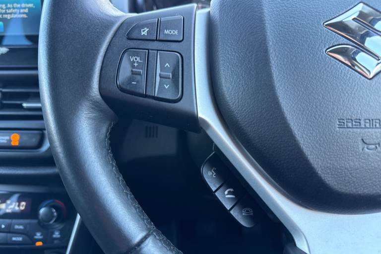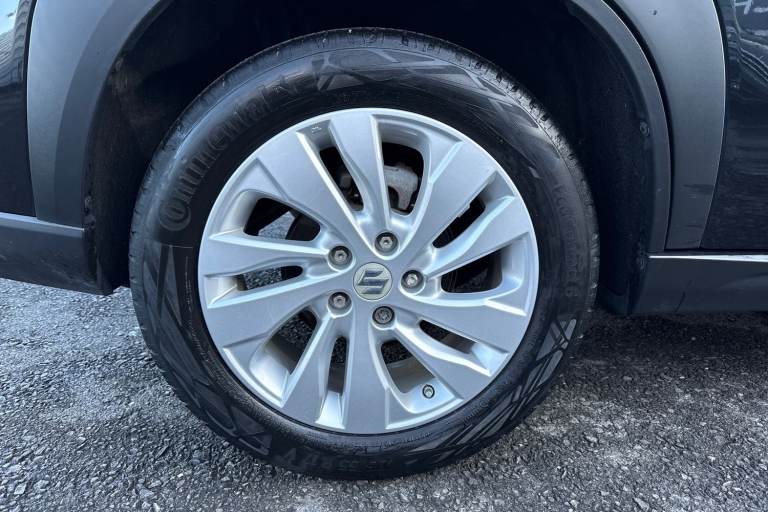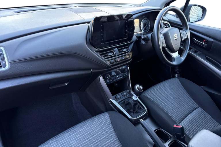The Suzuki S-Cross 1.4 Boosterjet MHEV Motion Euro 6 (s/s) 5dr Petrol Hybrid Manual in sleek black combines style, efficiency, and practicality in one compact SUV. Powered by a 1.4-l Boosterjet petrol engine paired with a mild-hybrid system, it delivers responsive performance while reducing emissions, meeting Euro 6 standards. Its manual gearbox ensures a connected, engaging drive, making it ideal for both city commutes and longer journeys. Designed for modern lifestyles, the S-Cross Motion features 17-inch alloy wheels with a stylish painted finish, giving it a refined and contemporary look. LED daytime running lights provide enhanced visibility and a distinctive front-end appearance. Inside, the cabin prioritizes comfort and convenience, featuring air conditioning, heated seats for those colder days, and a multifunction Bluetooth radio for seamless connectivity on the go. Cruise control makes highway driving effortless, while the rear camera ensures easy parking and added safety. Whether navigating urban streets or venturing on weekend adventures, the S-Cross offers a confident and composed ride. Its combination of smart technology, hybrid efficiency, and practical features makes it a versatile choice for drivers who demand both performance and comfort. This model delivers a stylish presence, excellent fuel economy, and a host of modern conveniences, making every journey enjoyable and stress free. This vehicle is part of the Motor Match Promise that includes a minimum 30...