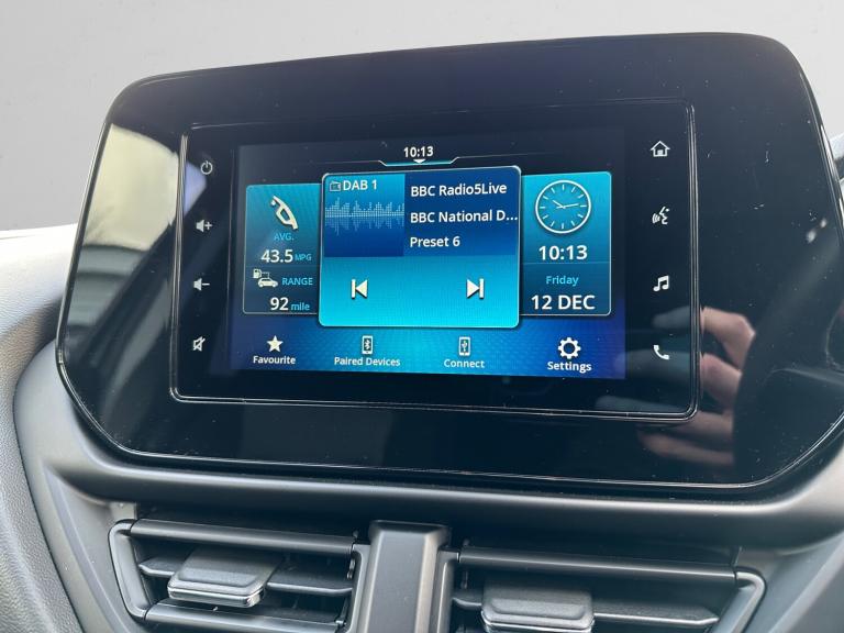 ..4.2'' colour LCD information display, 7'' infotainment display, Adaptive cruise control with speed limiter, Blind spot monitor, Bluetooth integrated into audio unit, eCall emergency call system, Emergency stop signalling system, Engine auto start/stop system, Front and rear parking sensors, Lane departure prevention, Lane departure warning system, PAS, Rear cross traffic alert, Rear parking camera, Smartphone link display with Apple CarPlay and Android Auto, Tachometer, Traffic sign recognition, Trip computer, Weaving alert, 2 Tweeters, 4 speakers, DAB Digital radio, Steering wheel mounted audio controls, USB connection, 1 speed with intermittent rear wiper + washer, 2 speeds (low/high) with adjustable intermittent front wiper + washer, Aluminium roof rails, Automatic headlamp levelling, Automatic headlights, Automatic wipers, Body colour door handles, Body colour door mirrors, Chrome effect window sills, Chrome front grille, Electric front windows, Electric rear windows, Electrically adjustable door mirrors, Electrically folding door mirrors with built-in turn signal lamp, Front fog lamps, Front/rear and under body trim - silver, Heated door mirrors, LED daytime running lights, LED headlamps (low and high beam), LED rear combination lamp, Manual day/night rear view mirror, Rain sensing front wipers, Rear fog lamp, Rear privacy glass, Rear side wing doors, Side louver bezels in silver, Third brake light, Visible VIN plate, Wheel arch extensions, 12V accessory socket in centre lower box, 12V accessory socket in luggage area, 2 stage reclining rear seats, 2x Front and rear door bottle holders, 3 seat bench in 2nd row, 3 spoke leather covered steering wheel, 4x cup holders (x2 front, x2 rear), 60/40 split folding rear seat, Centre cabin light, Centre console storage, Centre lower box, Centre lower console box lights, Child seat tether anchorages x3, Chrome interior door handles, Driver and front passenger heated seats, Driver's seat height adjuster, Driver's side foot rest, Driver/front passenger sunvisors with ticket holders + illuminated vanity mirrors, Dual zone automatic air conditioning, Fabric upholstery, Front centre armrest, Front fabric door trim insert, Front footwell lights, Front headrests, Front map light, Front passenger side seatback pocket, Gearshift paddles, Glovebox light, Heater, ISOFIX child seat anchorages X 2, Luggage area cover, Luggage area lamp, Luggage area shopping bag hook, net hook x 2, Passenger's side assist grips, Pollen