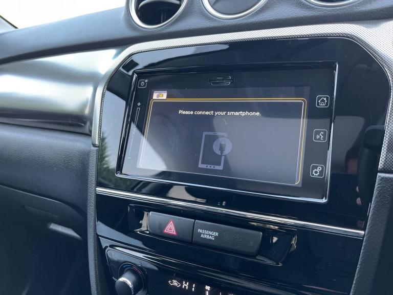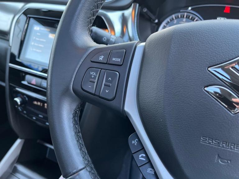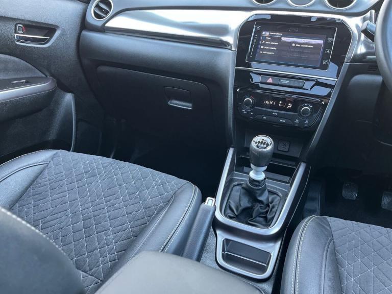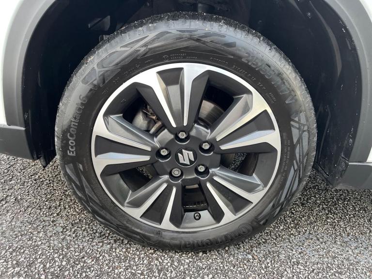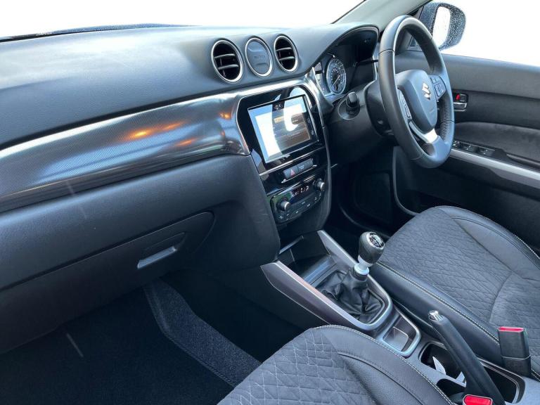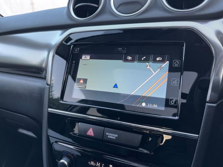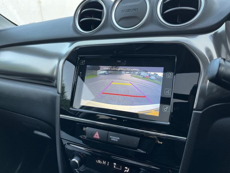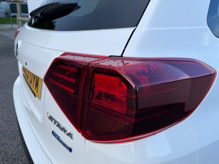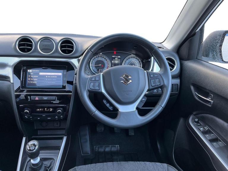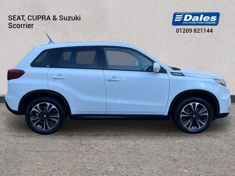 The Suzuki Vitara 1.4 Boosterjet 48V Hybrid SZ5 5-door Estate in white is a stylish and high-tech vehicle with a sleek design. With just 15062 miles on the clock, this 2023 model is equipped with a range of features for convenience and safety.The exterior boasts 17"" polished alloy wheels, automatic rain-sensing wipers, LED daytime running lights, and a double sliding panoramic sunroof. Safety features include adaptive cruise control, blind spot monitor, lane departure warning system, and rear cross-traffic alert.Inside, the cabin offers a comfortable and modern feel with suede upholstery, a 4.2-inch colour LCD display, DAB digital radio, navigation system, and smartphone integration with Apple CarPlay and Android Auto. The vehicle also includes climate control air conditioning, automatic headlights, and a plethora of storage options such as front cupholders and a glovebox light.Safety is a top priority with features like curtain airbags, side airbags, ABS, ESP, tyre pressure monitor, and a rear parking camera. The Suzuki Vitara is a versatile and reliable SUV perfect for both city driving and adventures off the beaten path.