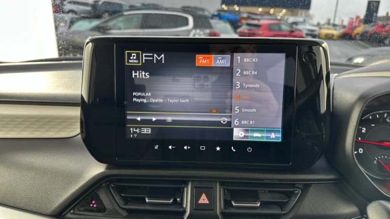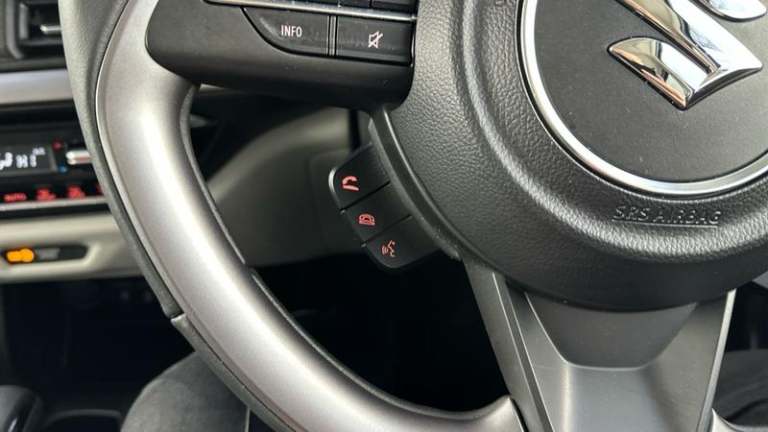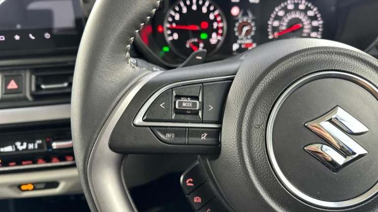 4 Speakers and 2 Tweeters, 9in Infotainment Display, Bluetooth Integrated into Audio Unit, DAB Digital Radio, Front Accessory Socket, Full Colour LCD Driver Info Display, Navigation System, USB and AUX Connectors - Console Box, Wireless Smartphone Link with Android Auto and Apple CarPlay, eCall, Adaptive Cruise Control, Blind Spot Monitor, Clock, Driver Monitoring System, Fuel Consumption Display - Average-Instantaneous and Range, Lane Departure Warning, Lights-On and Key-In Reminder, Low Fuel Warning Light, Outside Temperature Display, Rear Parking Camera, Rear Parking Sensors, Suzuki Connect, Traffic Sign Recognition, Tyre Pressure Indicator, Weaving Alert, 16in Alloy Wheels - Polished, Black Coloured A and B Pillars, Body Coloured Exterior Door Handles, Body Coloured Exterior Door Mirrors, C Pillar Trim Moulding, Electric Front and Rear Windows, Electrically Adjustable-Heated-Power Folding Door Mirrors with Built-In Turn Signal Lamp, Emergency Flat Tyre Repair Kit, Front Grille - Black, Green Tinted Windows, Locking Wheel Nuts, Rear Fog Lamps, Rear Privacy Glass, Rear Upper Spoiler, Side Under Spoiler, Automatic Headlamps, Guide Me Home Light Function, High Beam Assist, LED Daytime Running Lights - Integrated in Headlamps, LED High Mount Stop Lamp, LED Position Lamps, LED Projector Headlamps, LED Rear Combination Lights, Manual Headlamp Levelling, 3 Cup Holders x2 Front - x1 Rear, 3-Spoke Leather Covered Steering Wheel, Automatic Air Conditioning, Centre Console with Storage,