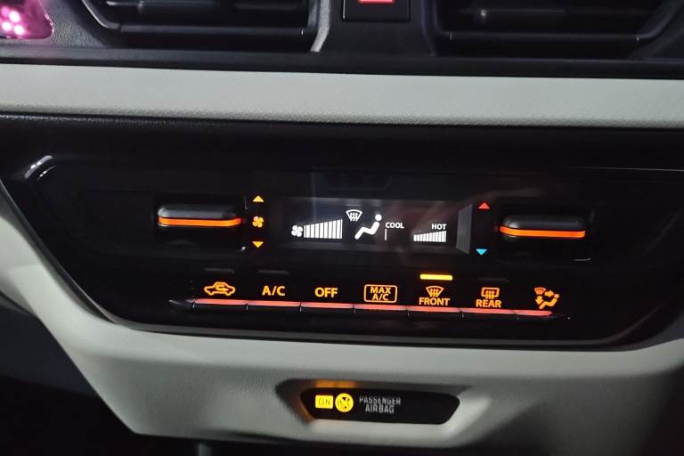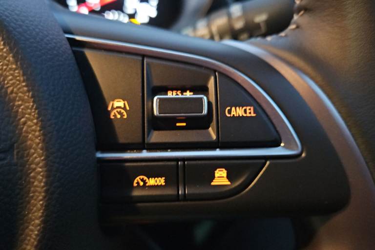 ..Adaptive cruise control, Automatic start/stop system, Blind spot monitoring, Colour LCD information display, Digital clock, Driver monitoring system, eCall, Fuel consumption display (average/instantaneous) and range display, Intelligent speed control support, Lane departure prevention, Lane departure warning system, Lane keeping assist (LKA), Low fuel level warning light, Navigation system, Outside temperature display, PAS, Rear cross traffic alert, Rear parking camera, Rear parking sensors, Remote fuel cap release, Smartphone integration with Apple CarPlay and Android auto, Suzuki connect, Tailgate, Traffic sign recognition, Weaving alert, 4 speakers + 2 tweeters, 9-inch infotainment display, Auxiliary input socket, Bluetooth audio streaming, DAB Digital radio, Steering wheel audio controls, USB Type A and C, 'Guide me home' headlamps, 1 speed with intermittent rear wiper + washer, 2 speeds front wiper with intermittent + washer, Automatic headlights, Black coloured A & B pillars, Black Upper and lower front grille, Body colour door mirrors and handles, C pillar trim moulding, Electric door mirrors, Electric front windows, Electric rear windows, Green tinted glass, Heated door mirrors, High beam assist, LED daytime running lights, LED High mounted stop light, LED position lamps, LED projector headlamps, LED rear combination lamp, Manual headlamp level control, Rain sensor, Rear fog lights, Rear privacy glass, Rear side wing doors, Rear spoiler, Side spoiler, 1 cup holder in rear, 12V Accessory socket in front console, 2 cup holders in front, 2 Isofix seat anchors, 3 bench rear seats in 2nd row, 3 rear head restraints, 3 spoke leather covered steering wheel, 60/40 split rear seats, Accessory socket, Centre console storage, Centre lower box, Child seat tether anchorages x 2, Chrome handbrake release button, Chrome interior door handles, Cloth upholstery, Door pockets with bottle holder, Driver/passenger sunvisors with ticket holders + vanity mirrors, Front cabin lights, Front headrests, Front map light, Front passenger side assist grip, Glovebox, Heated front seats, Heater, Height adjustable driver's seat, Luggage area lamp, Manual air conditioning with digital control panel, Material door trim ornament, Parcel shelf, Passenger seat back pocket, Pollen filter, Single front passenger seat, Tilt adjustable steering wheel, Tilt/telescopic adjustable steering wheel, 3 point ELR seatbelts for centre seat, 3 point ELR seatbelts front and rear, ABS+EBD+Brake