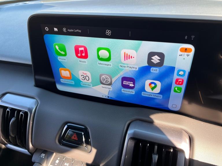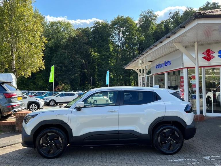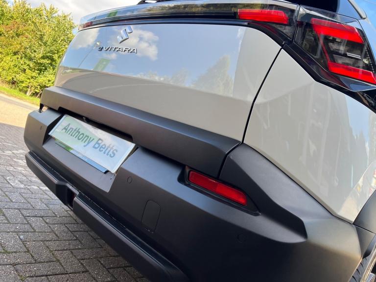 ..3 x selectable driving modes (Eco, Normal, Sport), Adaptive cruise control, Battery thermal management preconditioning (via in-vehicle controls or Suzuki Connect app), Blind spot monitor, Bluetooth integrated into audio unit, Driver monitoring system, E-call, Front parking sensors, Front seat USB connectors (x1 Type A, x1 Type C), Integrated Display System (10.25-inch digital meter display & 10.1-inch central multimedia display), Intelligent speed control support, Lane departure prevention, Lane keep assist, Navigation system, Occupant detection (front and rear), PAS, Rear cross traffic alert, Rear parking camera, Rear parking sensors, Rear seat USB connectors (x1 Type A, x1 Type C), Remote air conditioning, seat heating and steering wheel heating (using Suzuki Connect app), Selectable easy operation pedal mode, Selectable SNOW mode (moderates torque delivery to help reduce wheel slippage), Shift dial, Traffic sign recognition, Wireless smartphone link display with Apple CarPlay and Android Auto, CCS2 DC charging inlet, Charging port lid lamp and charging indicator indicator lamp, Immediate charging switch, Mode 3 charging cable (Type-2 to Type-2), Type-2 (3-phase) AC charging inlet, 4 door speakers, DAB Digital radio, Steering wheel mounted audio controls, 1 speed with intermittent rear wiper + washer, 2 speeds (low/high) with adjustable intermittent front wiper + washer, 3-point design LED headlamps, Auto dimming rear view mirror, Automatic headlights, Black front grille, Black side mouldings, Black wheel arch extensions, Body colour exterior door handles, Body colour exterior door mirror, Electric adjustable door mirrors, Electric front+rear windows, Electrically folding door mirrors with built in turn signal lamp, Guide me home light, Heated door mirrors, High beam assist, High mounted stop lamp, LED daytime running lights, LED rear combination lamp, Manual headlight levelling, Rain sensing front wipers, Rear privacy glass, Rear side wing doors, Rear upper spoiler, Rear window demister, 10-step reclining rear seats, 10-step sliding rear seats (160mm total sliding range), 12V accessory socket (centre console), 2-spoke synthetic leather covered steering wheel, 2x Front and rear door bottle holders, 3 bench rear seats in 2nd row, 3 rear headrests, 40:20:40 split folding rear seats, Ambient lighting in middle tray and front door trims, Automatic air conditioning, Carpet floor mats, Centre cabin light, Climate control switches, Console box with armrest,