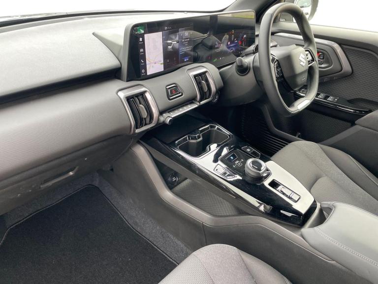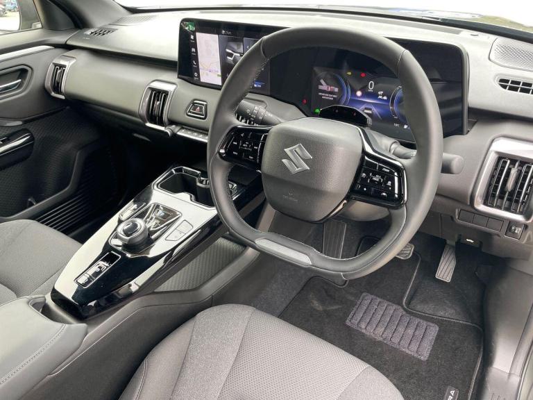The Suzuki e Vitara is an all-electric hatchback packed with a host of advanced features. This 5-door car offers 128kW of power and a 61kWh battery capacity, making it an environmentally friendly choice for urban driving. The exterior features a sleek design with 18"" alloy wheels, LED headlamps, and green body colour. Inside, the cabin is equipped with modern amenities such as automatic air conditioning, adaptive cruise control, DAB digital radio, and a navigation system. Safety features include ABS, multiple airbags, blind spot monitor, lane keep assist, and rear parking camera. The Suzuki e Vitara also offers convenience features like keyless entry and start, heated steering wheel, wireless smartphone link display, and selectable driving modes for a personalised driving experience.