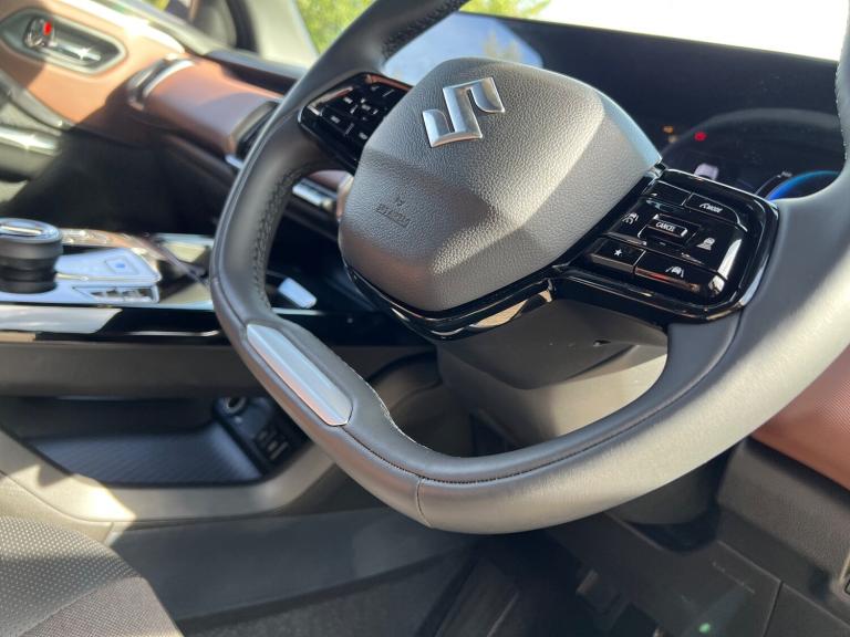 ..3 x selectable driving modes (Eco, Normal, Sport), 360 camera, Adaptive cruise control, ALLGRIP 4 mode 4 wheel Drive system, Battery thermal management preconditioning (via in-vehicle controls or Suzuki Connect app), Blind spot monitor, Bluetooth integrated into audio unit, Driver monitoring system, E-call, Front parking sensors, Front seat USB connectors (x1 Type A, x1 Type C), Integrated Display System (10.25-inch digital meter display & 10.1-inch central multimedia display), Intelligent speed control support, Lane departure prevention, Lane keep assist, Navigation system, Occupant detection (front and rear), PAS, Rear cross traffic alert, Rear parking sensors, Rear seat USB connectors (x1 Type A, x1 Type C), Remote air conditioning, seat heating and steering wheel heating (using Suzuki Connect app), Selectable easy operation pedal mode, Selectable TRAIL mode (enhances brake LSD to help with smooth exit from slippery areas), Shift dial, Traffic sign recognition, Wireless phone charger, Wireless smartphone link display with Apple CarPlay and Android Auto, ALLGRIP-e 2-mode dual-motor electric 4-wheel Drive system, CCS2 DC charging inlet, Charging port lid lamp and charging indicator indicator lamp, Immediate charging switch, Mode 3 charging cable (Type-2 to Type-2), Type-2 (3-phase) AC charging inlet, 4 door speakers, DAB Digital radio, Instrument panel speaker, Premium Infinity by Harman speakers, Steering wheel mounted audio controls, Subwoofer, 1 speed with intermittent rear wiper + washer, 2 speeds (low/high) with adjustable intermittent front wiper + washer, 3-point design LED headlamps, Adaptive high beam system (AHS), Auto dimming rear view mirror, Automatic headlamp levelling, Automatic headlights, Black front grille, Black side mouldings, Black wheel arch extensions, Body colour exterior door handles, Body colour exterior door mirror, Electric adjustable door mirrors, Electric front+rear windows, Electrically folding door mirrors with built in turn signal lamp, Glass roof with sun shade, Guide me home light, Heated door mirrors, High mounted stop lamp, LED daytime running lights, LED front fog lamps, LED rear combination lamp, Rain sensing front wipers, Rear privacy glass, Rear side wing doors, Rear upper spoiler, Rear window demister, 10-step reclining rear seats, 10-step sliding rear seats (160mm total sliding range), 10-way power adjustable driver's seat, 12V accessory socket (centre console), 2-spoke synthetic leather covered steering