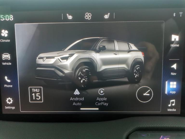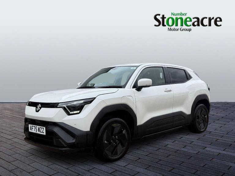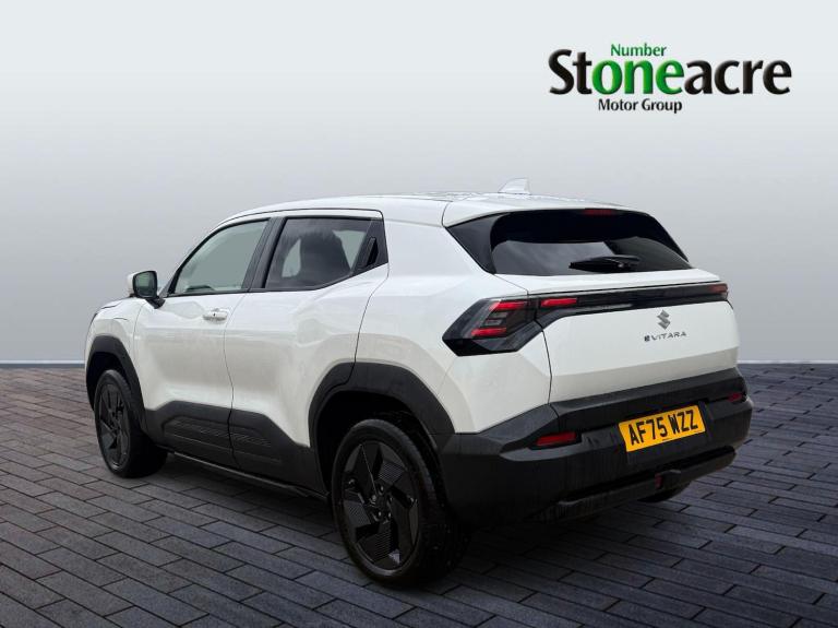 Discover the 2025 Suzuki e Vitara Motion, an electric vehicle designed for modern driving. This model boasts a 49 kWh battery, offering a maximum range of 214 miles on a full charge. Recharging at home with a 7kW charger takes approximately 7 hours and 13 minutes, ensuring convenience for daily use. For quicker top ups, the e Vitara can reach 80% charge from empty in just 51 minutes at a compatible public charging station.The Suzuki e Vitara Motion is equipped with advanced features to enhance your driving experience. It includes striking 3 Point Design LED headlamps, automatic headlights for effortless visibility, and a rear view camera to aid with parking. Stay connected and entertained with the integrated Bluetooth system. For added safety and awareness, the vehicle features a Blind Spot Monitor, helping you navigate busy roads with greater confidence. These highlights demonstrate the e Vitara's commitment to providing a refined and secure journey.