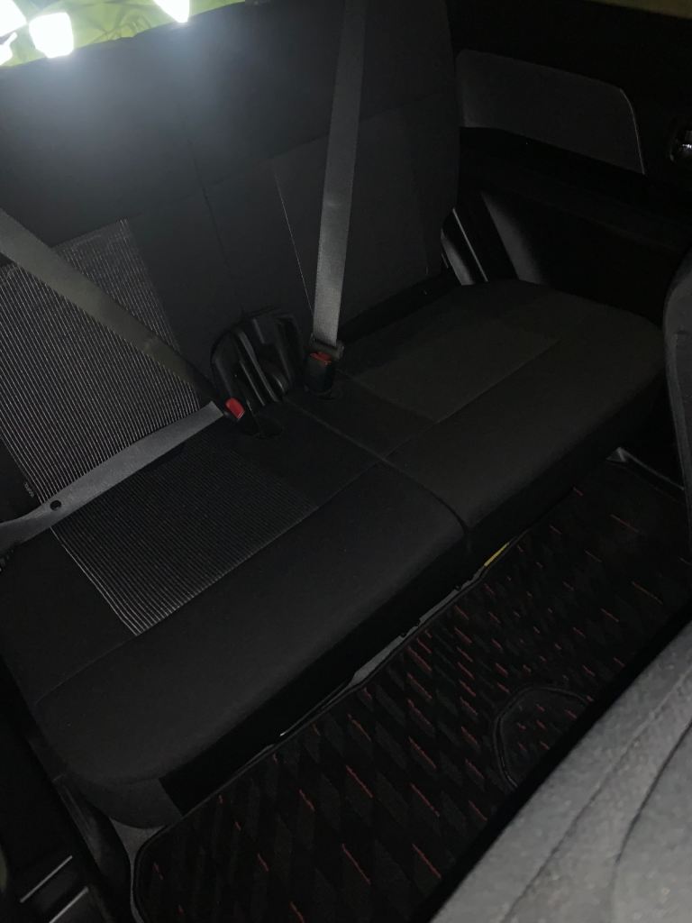 Compact and efficient car with black cloth interior.