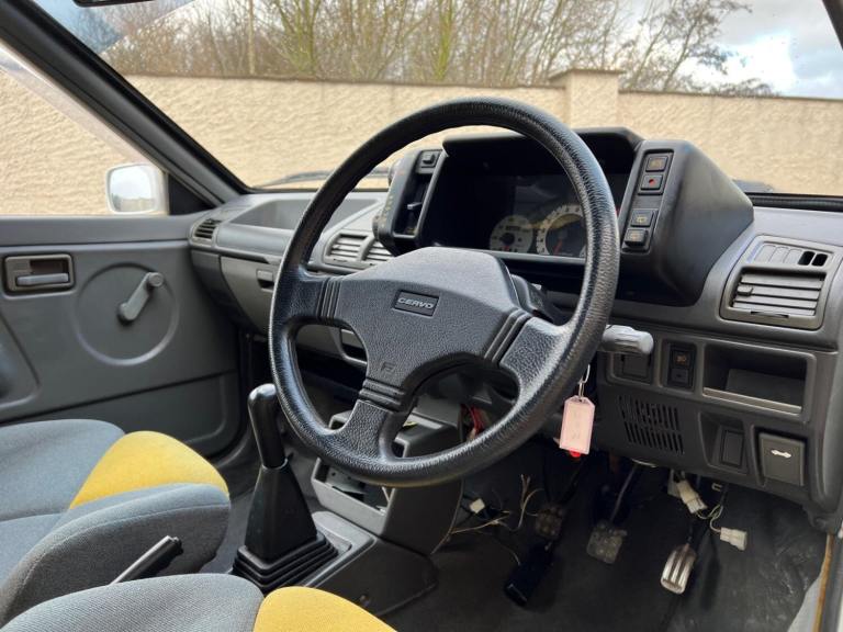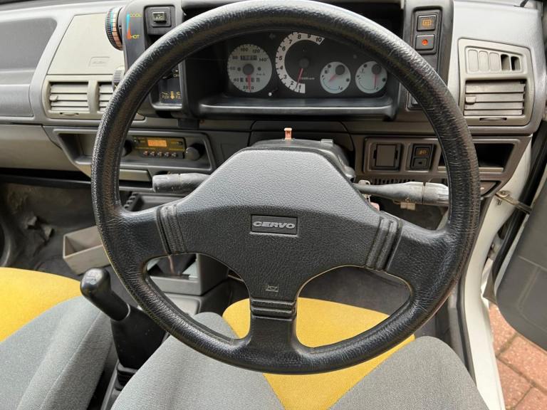 On January 22, 1988, the next Cervo was introduced. Suzuki were accentuating the Cervo's van capabilities this time around, with a squat, boxy rear end which gave the car an exceedingly bizarre appearance in combination with the front clip and door skins of the Alto/Fronte. The C-pillar was very wide, the front part of the roof was made of glass, there was a small wraparound rear spoiler and a more prominent one at the top of the hatchback lid. One nickname in Japan was ""Airbrick"", while others referred to it as ""Komachi Yokocho"" - hinting at the Cervo's continued popularity with stylish young females. The interior was no less unusual than the outside: a large gray and bright yellow diagonal pattern covered the seats while white gauges added a touch of sportiness. Storage compartments abounded, in the thick C-pillars as well as in a central console. A high-powered Mitsubishi Diatone stereo was also standard.