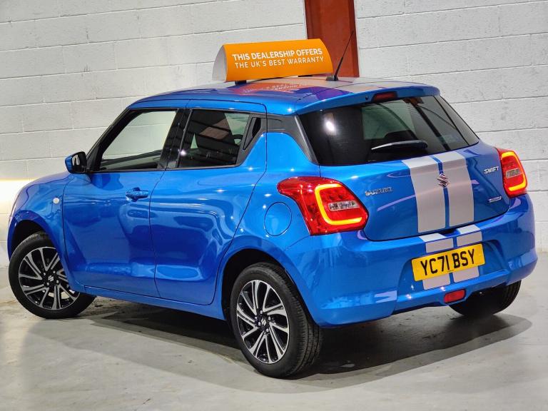 The Car Shack HX Ltd are delighted to offer a stylish, economical, and low-mileage hatchback, this outstanding 2021 71 Suzuki Swift 1.2 Dualjet Hybrid SZ-L. Finished in a stunning metallic blue and having covered just 8152 miles from new with only 2 owners, this ULEZ-compliant Swift offers the perfect blend of modern technology, low running costs, and everyday practicality. Powered by Suzukis 1.2 Dualjet 83PS mild hybrid petrol engine and paired with a smooth 5-speed manual gearbox, it delivers excellent fuel efficiency and a refined, enjoyable drive. It comes with a valid MOT until 27082026, and although recorded as a Category S professionally repaired, it drives exactly as it should with no faults, making it an excellent value-for-money option with huge savings off the original list price grab yourself a real bargain. Well equipped with a generous specification including 16-inch alloy wheels, rear parking camera, Apple CarPlay, Android Auto, Bluetooth connectivity, adaptive cruise control, collision assist, lane departure warning, LED daytime running lights, air conditioning, touchscreen infotainment system, DAB radio, ISOFIX mounting points, and a leather multifunction steering wheel. The bodywork, interior, and tyres are all in excellent condition, reflecting the vehicles careful ownership. It is HPI clear of finance and comes with flexible parts and labour warranty options available for 3, 6, 12, or 24 months to suit your needs. Nationwide delivery is available, part exchange welcome any car considered, and the car can be reserved with a small deposit. Viewings are by appointment only at The Car Shack HX Ltd, Unit 14A, West Central Business Park, Victoria Road, Halifax, HX1 5QH. To arrange a test drive, video viewing, or for more information, please give us a call. Our dedicated staff work hard to ensure your experience with us is the absolute best, and customer satisfaction is always our top priority. This is one of the best-value, low-mileage examples of the Suzuki Swift Hybrid SZ-L currently on the market, a superb opportunity not to be missed.