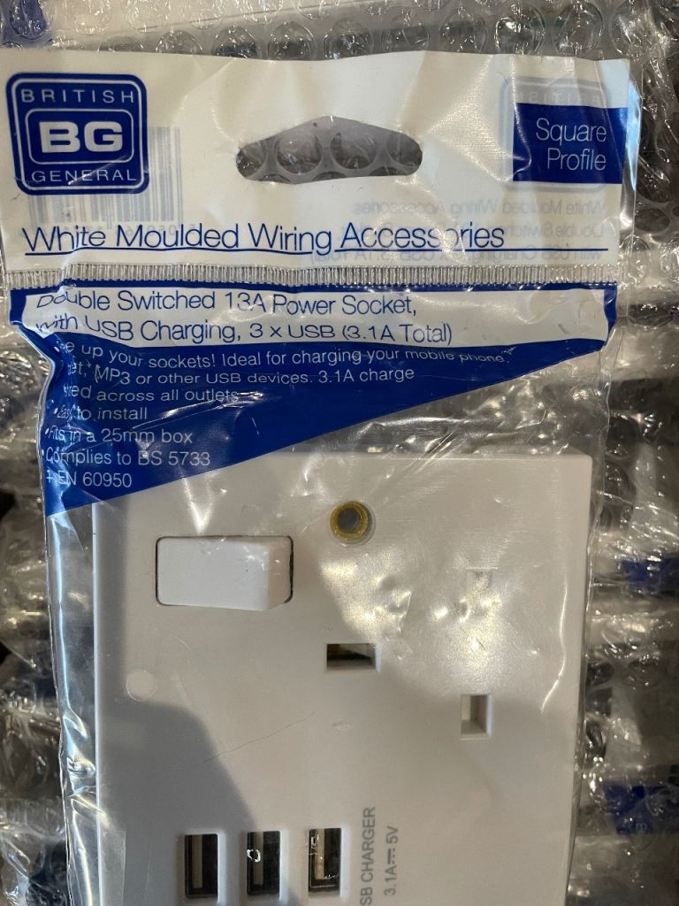 British General 13A Socket with 3-Outlet USB Charger brand-new I have 28 of these available at £10 each