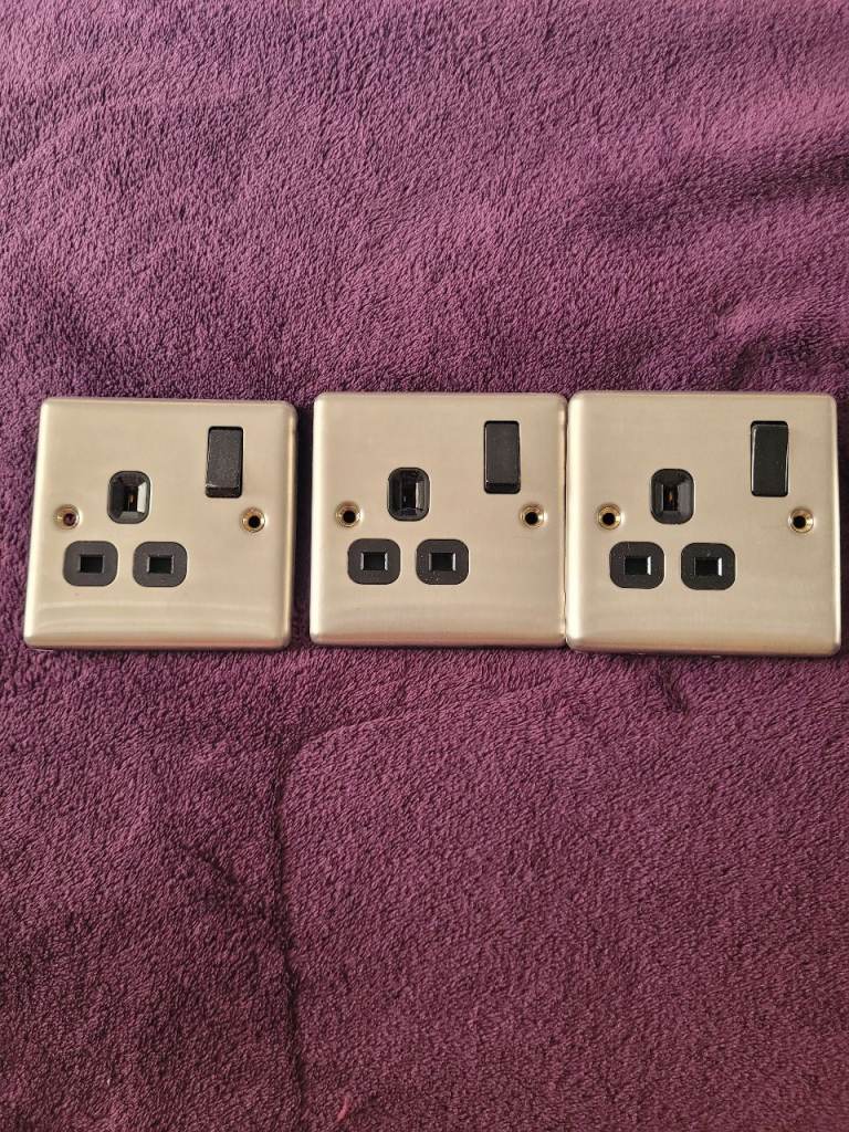 A set of three high-quality double power sockets, perfect for a home renovation or room upgrade. All items are brand new in original packaging (boxes may show minor shelf wear).