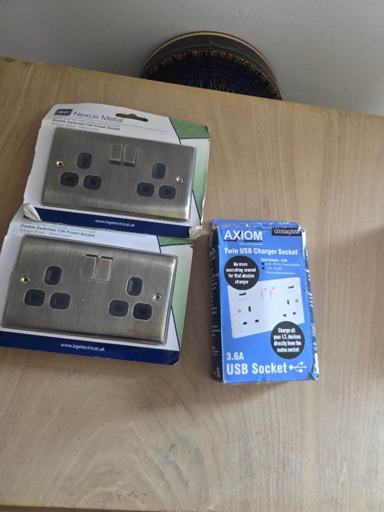 Bundle of 3 Double Wall Sockets: 2x BG Nexus Antique Brass & 1x Axiom USB Charger Socket