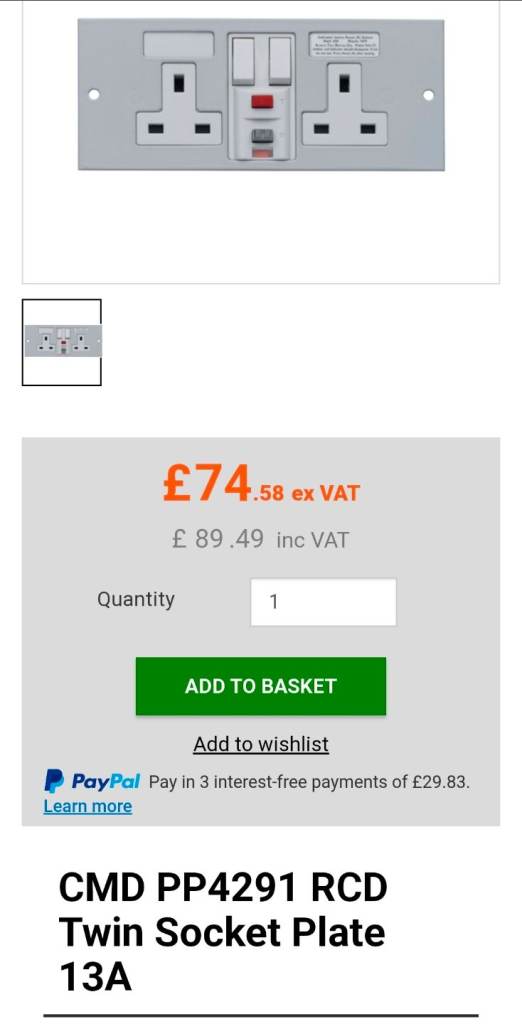 CMD PP4291 RCD Twin Socket 30mA RCD socket Outlet type 161480