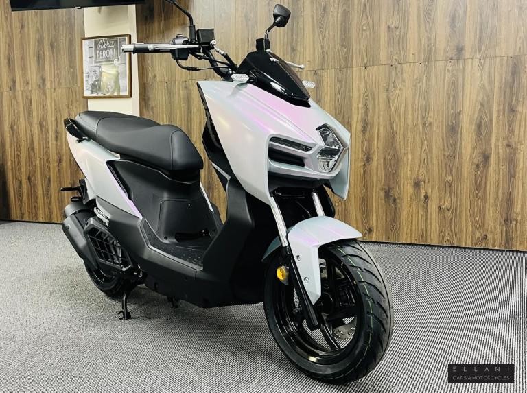 Only £2999 plus £150 OTR, big range of colours available, features include pearlescent paintwork, keyless ignition, TFT screen, huge storage space under seat, plus much more! We are a main dealer for Lambretta, Keeway & SYM. We are an established, highly rated family run business and have helped thousands of happy customers find their new car or motorcycle for almost 10 years! Read our 5 star reviews on Google and Autotrader. Finance, delivery and part exchange options are available, please feel free to contact us with any enquiry. Sym MMBCU is a crossover scooter. “MMB” stands for “Mamba”, referring to the snake, with a new paint technique for its bodywork that allows it to see different colours depending on the outside lighting, like Mamba snakes, capable of adapting to different scenarios. “CU”, on the other hand, refers to “Crossover Unique”. Its aggressive design, with many edges, does not prevent it from creating an optimal position for driving, making the MMBCU an ideal companion for travelling The MMBCU has a wide flat platform for the feet and a comfortable seat. Technically, it stands out for its high technological equipment, such as the anti-lift engine (ALEH system), which improves stability during acceleration and the unified zero resistance starter and alternator system (ZRSG), in which the alternator becomes a motor to directly drive the crankshaft and start the engine smoothly and quietly while reducing the weight of the scooter. Having this technology, driving is not only safe but also more sustainable. Other notable features of the MMBCU include 100% LED lighting, high-contrast LCD instrumentation, traction control system (TCS) and a 28-litre under-seat storage space that can hold a helmet and much more. Embark on the vivid ride with MMBCU 125 ABS around the city and be the spotlight!