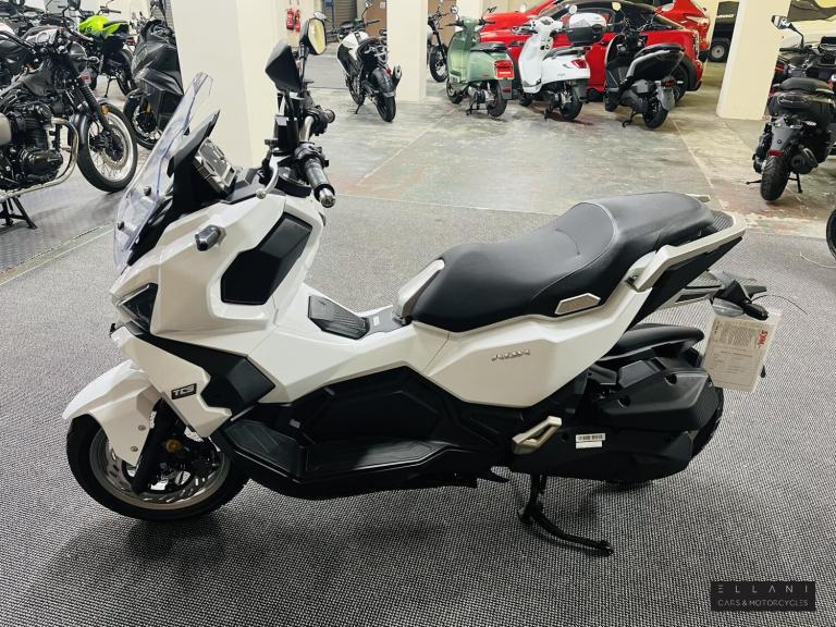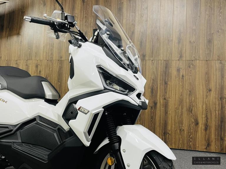 Ride away for £3299 plus £150 OTR, 2 year warranty and first years road tax included. Finance, Part Ex and Delivery available. Inspired by a sense of adventure, the SYM ADX 125 scooter boasts a unique and distinctive personality that sets it apart from other vehicles. Its design is a perfect blend of power, speed, and style elements, while also combining versatility with sophisticated beauty. With features like a mono-shock absorber, special tires, and a comfortable riding position, the ADX can effortlessly handle rough and smooth terrains with equal ease.The ADX is not just a commuter scooter; it is a true masterpiece of crossover engineering that transforms every ride into an enjoyable and exciting adventure. Whether you're seeking a thrilling ride or just some simple fun in your daily life, the ADX is the perfect partner that you've been dreaming of. To enhance both style and safety, the ADX is equipped with full LED lighting, including LED headlights, position lights, tail lights, and turn indicators. The LED lighting not only makes the ADX visually stunning but also greatly improves its safety on the road. The all-new 5'' TFT instrument features an auto-dimmer that ensures great visibility in all lighting conditions. Additionally, it has two modes - Day and Night - that can be switched automatically. The clear instrument information provides optimal support for riders on all their adventures. The keyless system 2.0 is more user-friendly and easier to operate. It also features an emergency ignition mode that allows you to start the engine even when the key fob battery is low. The ADX boasts a large 15L fuel tank, which reduces the frequency of visits to the gas station. This fuel tank capacity is even larger than most maxi scooters, allowing riders to focus on enjoying their ride without worrying about fuel. The ADX also features a front compartment that provides convenient storage space for your phone, wallet, or other gadgets, making it the perfect companion for both short and long trips. Additionally, the ADX scooter features a front compartment that allows riders to put their phones, wallets, or gadgets inside. The scooter's dimensions are 1980 x 780 x 1225 mm in length, width, and height, respectively, with a wheelbase of 1390mm. It has a telescope fork front suspension and a single-sided mono-shock rear suspension, both made of aluminium rims. The front tire dimensions are 120/70-13, while the rear tire dimensions...