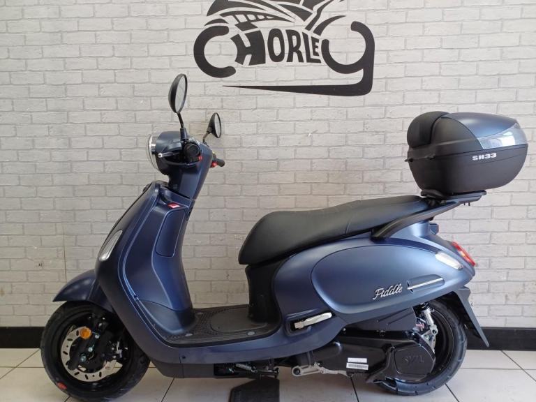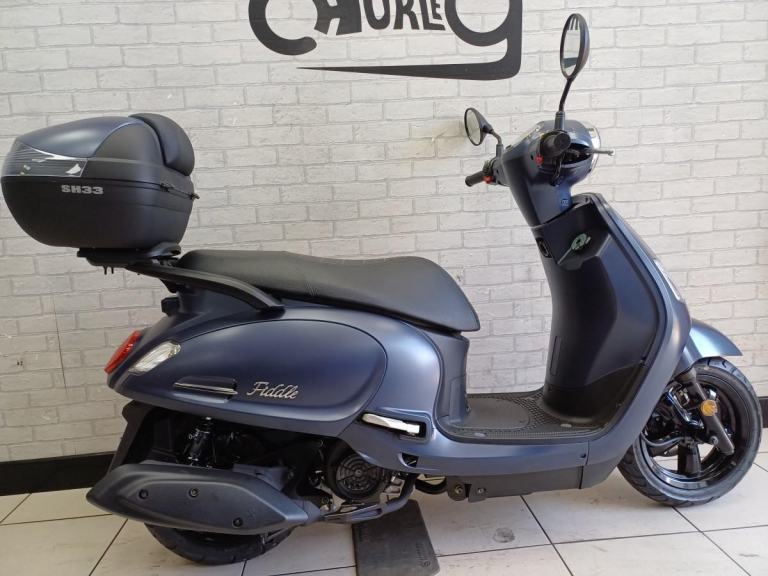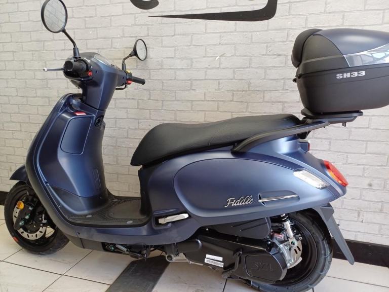 Introducing the updated and improved SYM Fiddle III fully automatic CBT friendly 125cc Scooter, the retro styled ideal partner for your urban travel. Alongside the awesome, deeper finish schemes, there have been some really clever and aesthetically pleasing additions and changes. The modern retro inspired design has the integration of arc body shape, classic European head light and tail light with chromed garnishes that come together to create an innovative scooter design. The Fiddle III is a robust, reliable and economical commuter scooter that offers a comfortable and stylish mode of transport for any rider. Boasting excellent ergonomics with spacious under seat storage, this retro styled scooter is a great choice for anyone looking for a quality vehicle for daily commutes or leisurely rides in or out of town. If you want capability, accessibility, frugality & reliability - the SYM Fiddle III 125cc is a simple, logical choice . *plus OTR charges. Buy On-Line or over the Phone, Low-Rate Finance Available, Local delivery from your nearest official dealer.Call for more details on 01257 230300 or what'app us on [Phone number removed]Colors available: Satin Blue, Grey, White, Green, Black and Gold.