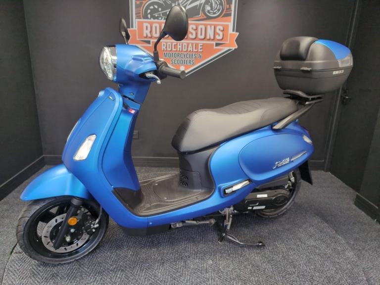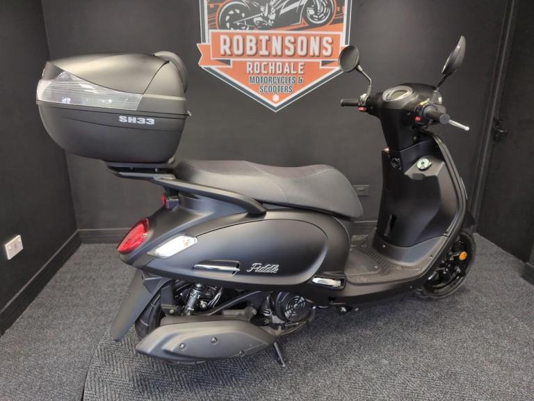 SYM Fiddle 125 CBS, ALL COLOURS AVAILABLE, Buy On Line or over the Phone, Low Rate Self Serve Finance Available, Free local delivery from your Local Official SYM Motorcycle & Scooter Dealer Robinsons of Rochdale.