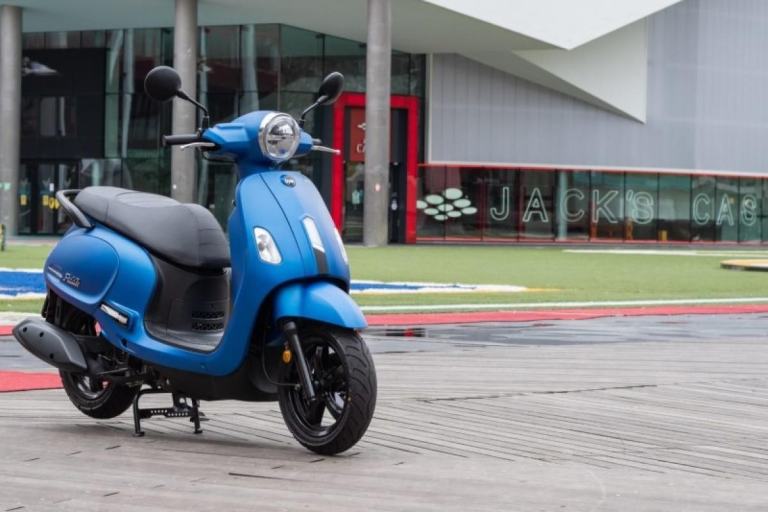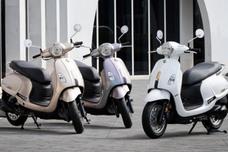 The modern retro inspired design has the integration of arc body shape, classic European head light and tail light with chromed garnishes that come together to create an innovative scooter design.