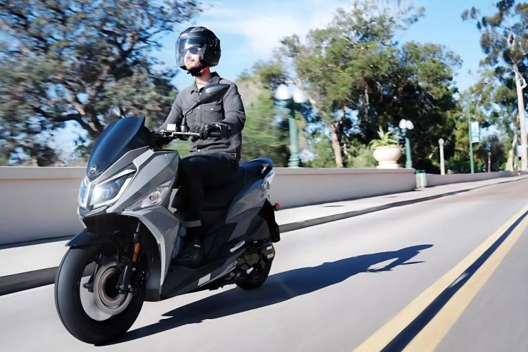 Other features of the SYM Jet 14 LC include a spacious under-seat storage compartment, a digital instrument cluster, an electrical starter, and LED lighting added to the headlight, taillight, and DRL front position lamp.