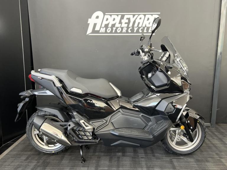 Its "Street" Spirit has a purposely aggressive, angular styling with carbon look trim panels, large LED front headlight / rear light assembly and its naked motorcycle handlebars.