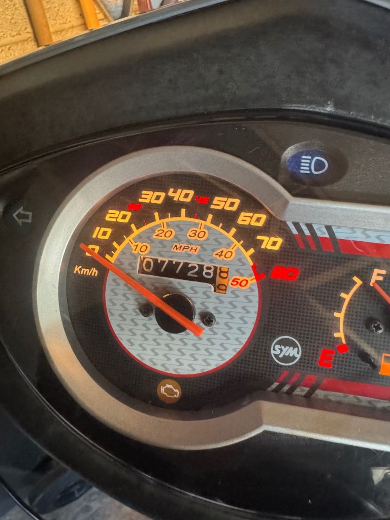 Lovely 2023 sym mask 50cc scooter.2 owners , new mot till March 2027. Storage box . Scooter Battery charger. Just had new spark plugs, piston kit ,cylinder head ,arm shaft arm spring, rocket arm. With proof of receipt.. pick up from Bridgwater.