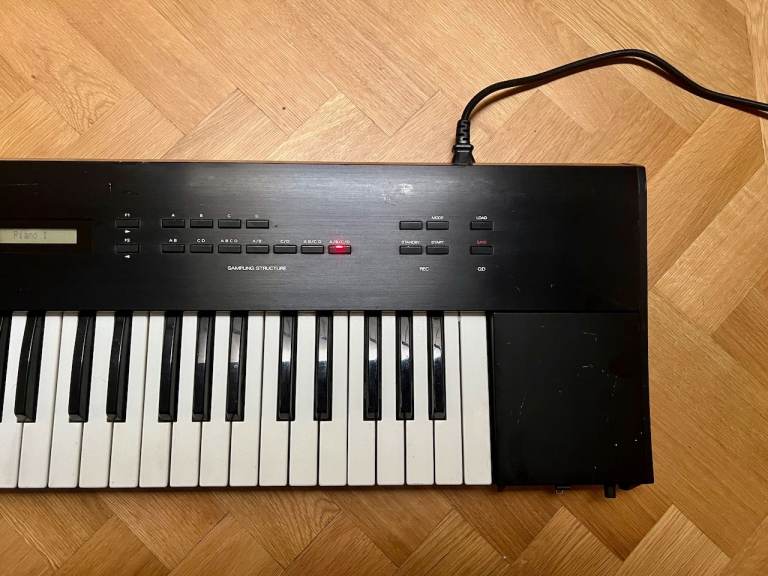 Samples can be stored and loaded on a built-in 2.8" floppy disk system called the Quick Disk drive ( of qhic I have changed to a Gotek USB drive with USB stick). Fortunately the 4 sample banks translate to 4-part multitimbrality in which the 4 banks can be played simultaneously, split and layered across the keyboard and so on.